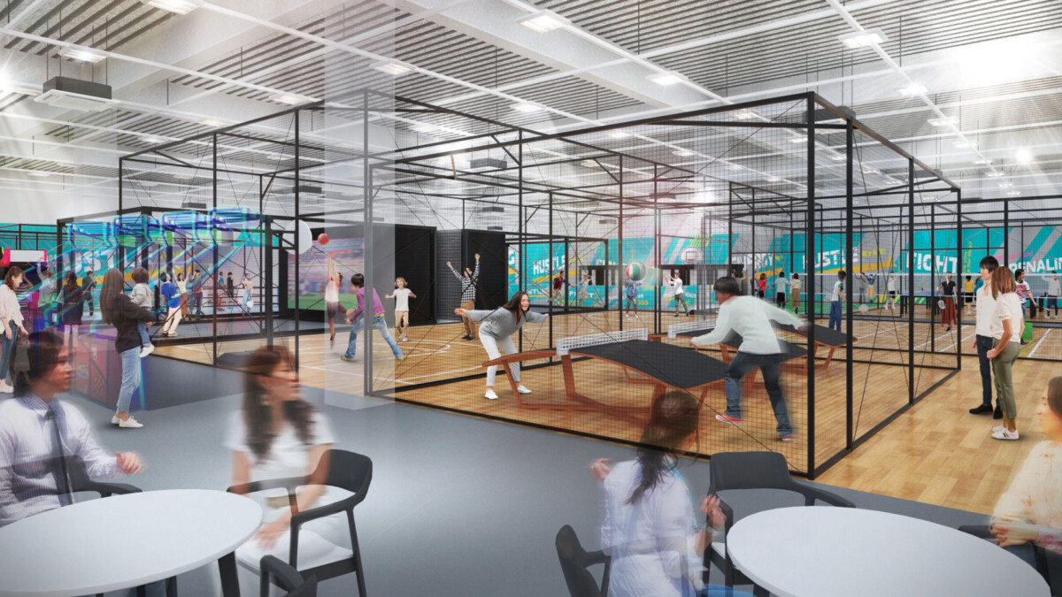 「スポーツ」をテーマとした30種類以上のスポーツ、アクティビティ、ゲーム、エンターテインメントを楽しむことができ、ドッジボールや卓球、フットサル、バスケットボール、ボルダリング、トランポリン、スケートボード、バブルサッカー、フットダーツなど、定番スポーツから新感覚スポーツまで楽しめるとのことです。