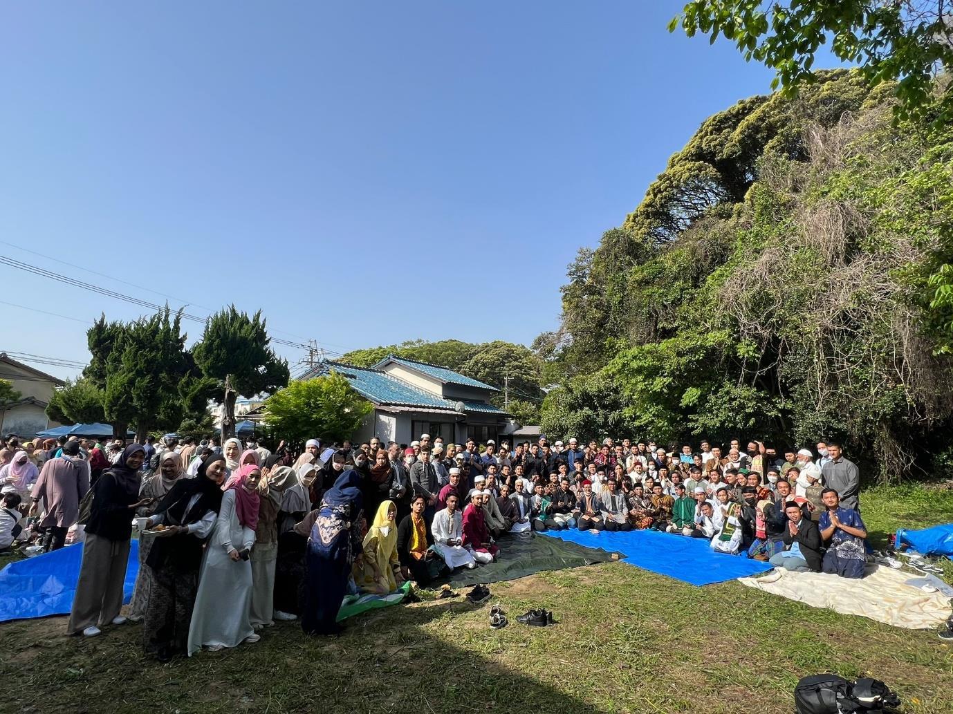 北九州近郊をはじめ、山口県や熊本県などで遠くから参加した多国籍のムスリムたちが勢揃い。あちこちで歓談が行われ、記念撮影があり、笑いが絶えない会場でした。