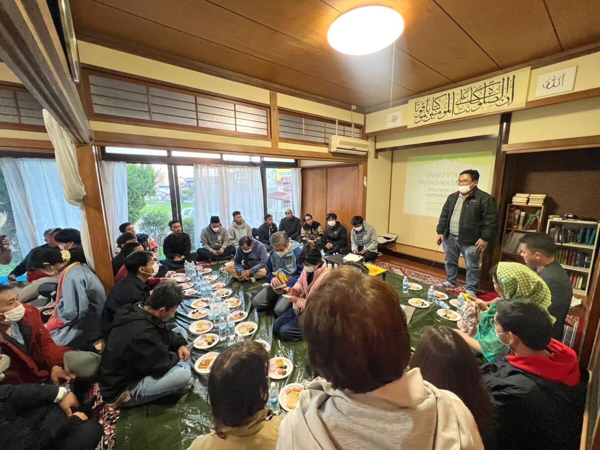 通常のイフタールより、参加者が多く、お世話になっている地域や関係各所の人たちを招いた場で、ともに食事を摂りました。