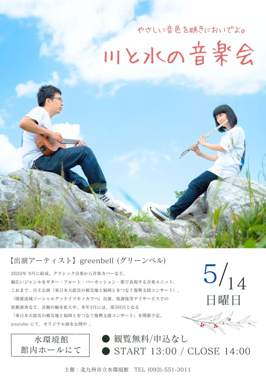 5月14日の午後1:00~午後2:00、水環境館で「川と水の音楽会」が開催されます。