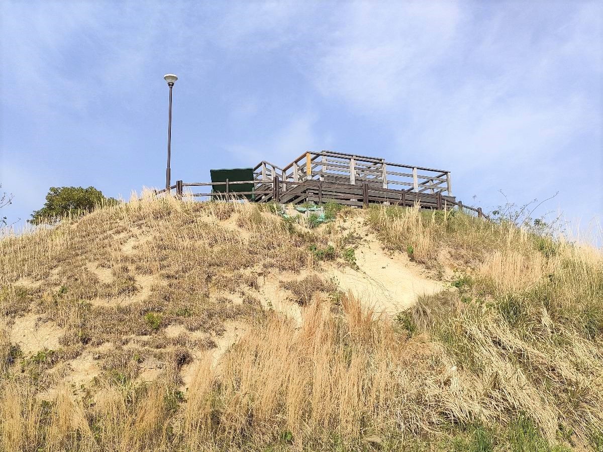 展望台から先の方を見ると、駐車場から一番離れた遊具広場が見えます。