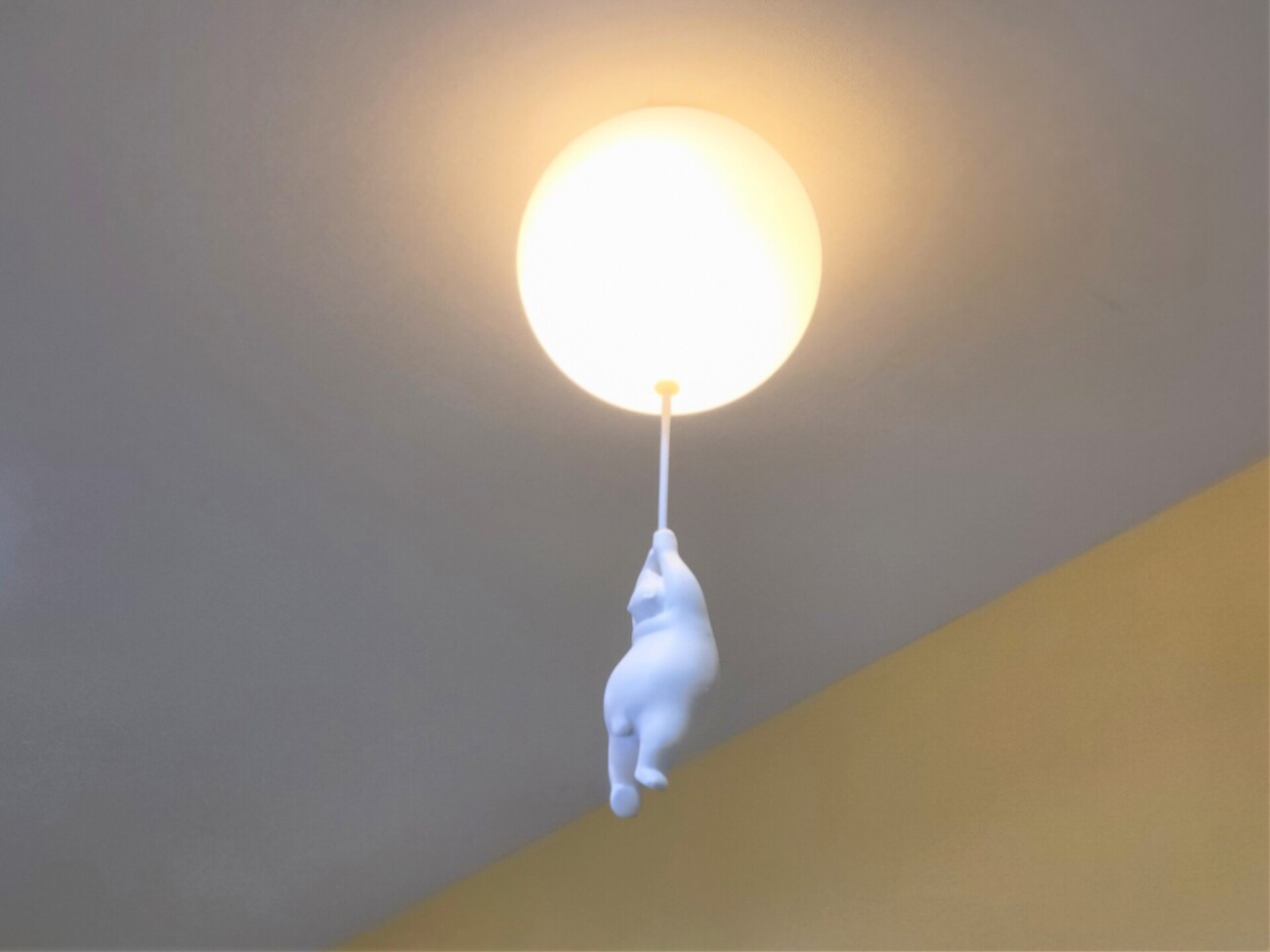 いろいろなポーズのシロクマがぶら下がる店内の照明