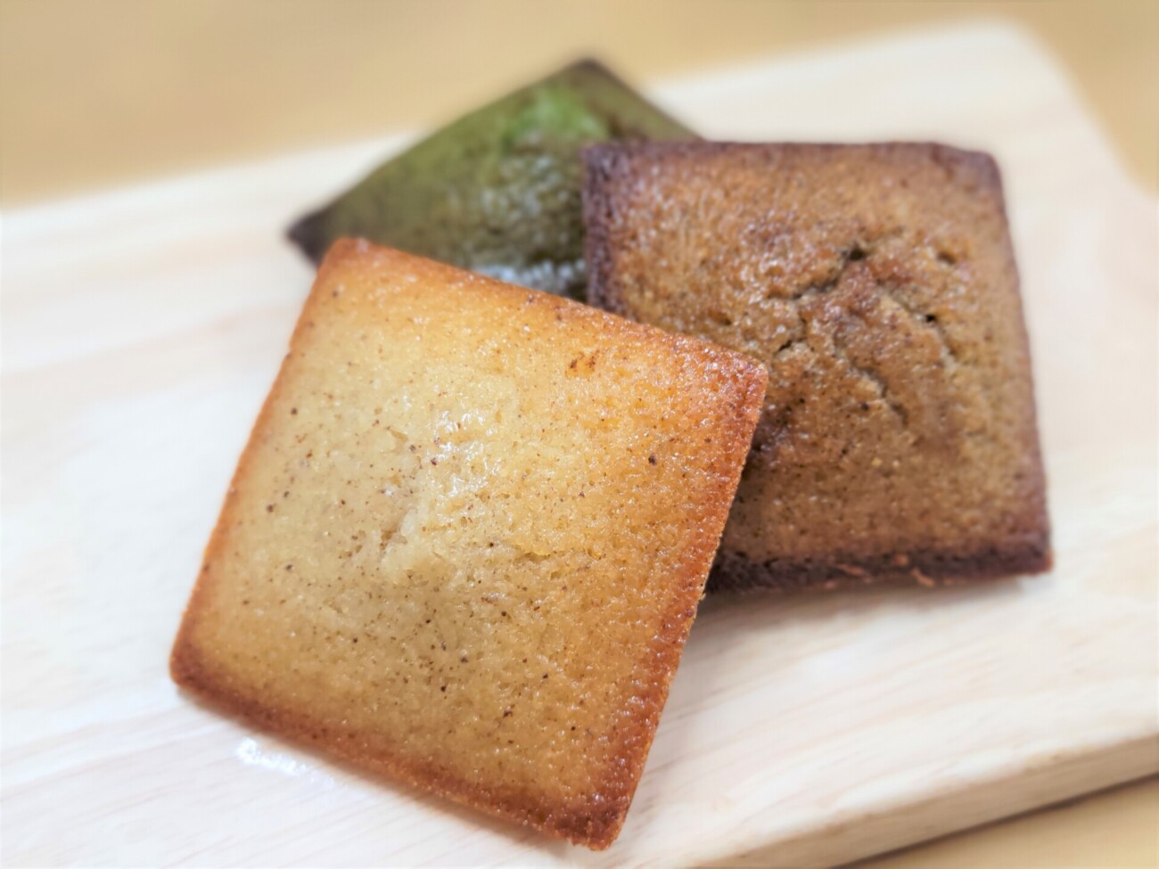 そんな同店の看板商品は店名にもなっている『フィナンシェ』。焦がしバターたっぷりのベーシックな「フィナンシェ」をはじめ、「レモン」「アールグレイ」「ピスタチオ」「ショコラ」の5種類を用意。普通フィナンシェと聞くと長方形のものをイメージしますが、こちらのフィナンシェは正方形にしているとのことです。