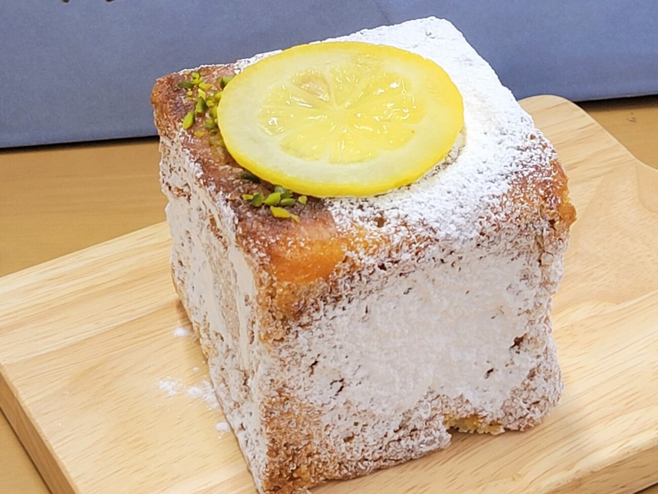 注目はキューブ型のパウンドケーキ(ホール)。レモンパウンド・八女抹茶パウンド・ショコラパウンドの3種類がありますが、「フレッシュなものを食べてもらいたい」という思いから、注文後にデコレーションしてくれます。そのため、5分ほど時間がかかりますが、店内の焼き菓子を見ていると完成まであっという間です。