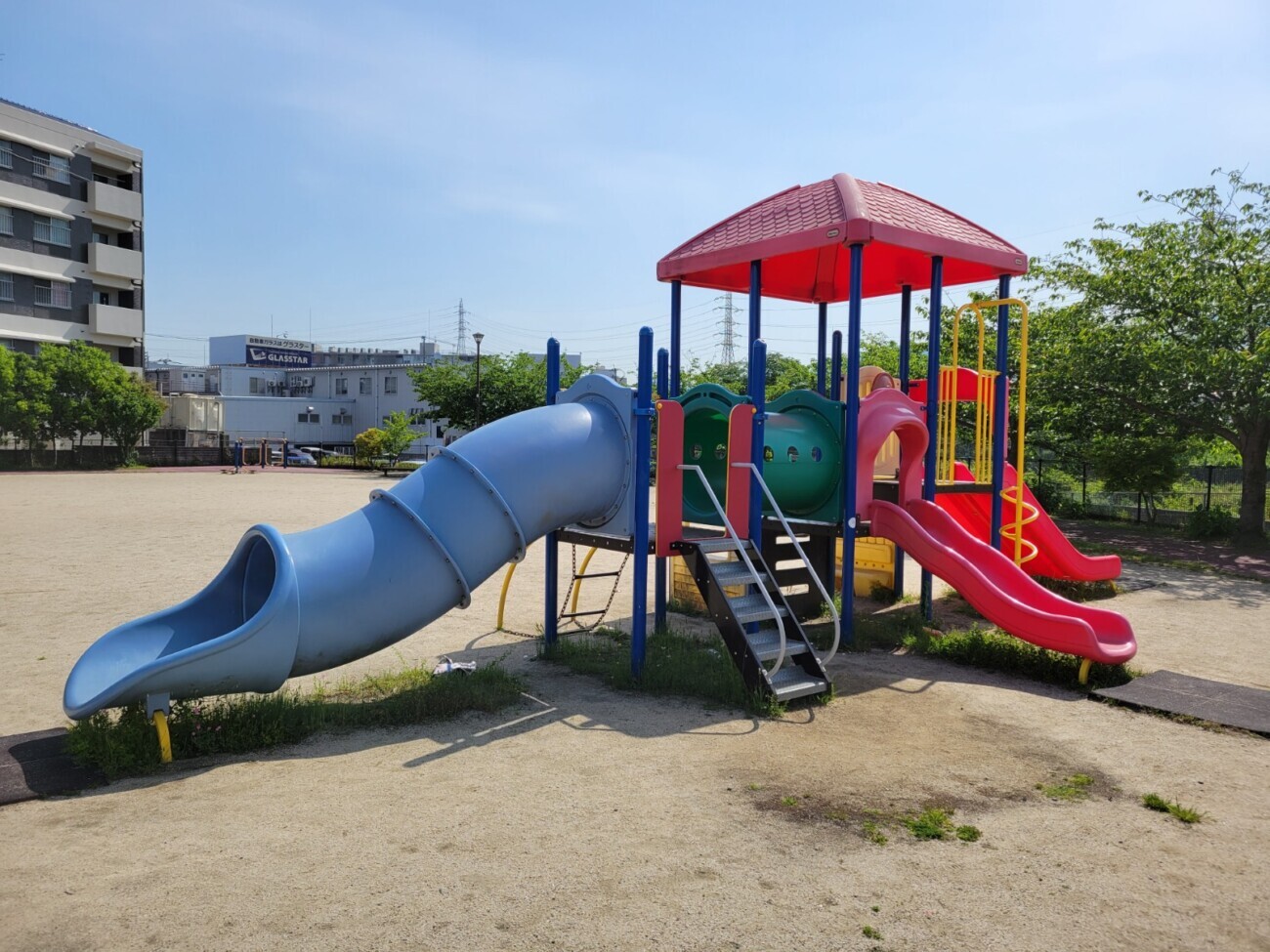 【南小倉公園】少数精鋭の遊具・健康器具が揃う街なかの公園(北九州市小倉北区)