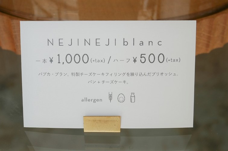 ◆「NEJINEJI blanc」(1本1000円、ハーフ500円)…特製チーズケーキフィリングを練りこんだブリオッシュ。パン+チーズケーキの味わいを楽しめるPBLオリジナル