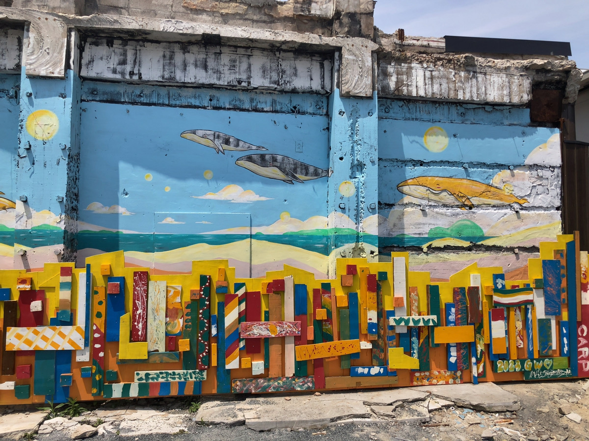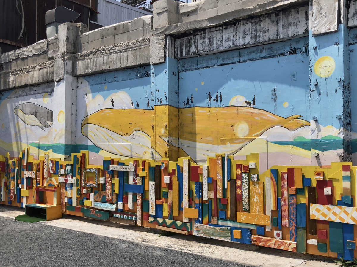 北九州市在住のアーティスト・詩太(うーた)さんが、自身の壁画にペイントされた木片を取り付け、「ウォールアート」として完成させました。