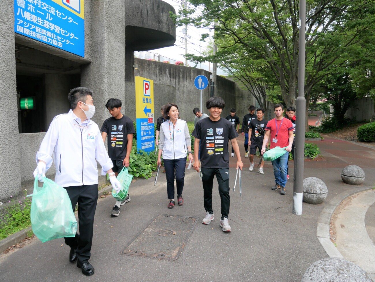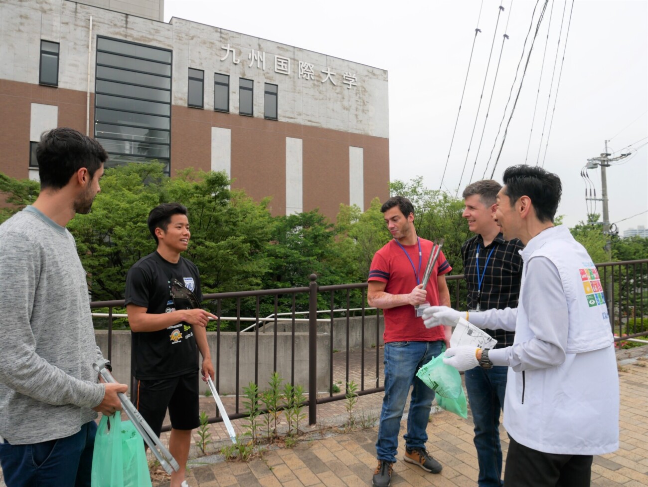 5月18日、独立行政法人 国際協力機構九州センター(JICA九州)のスタッフと九州国際大学サッカー部の有志が合同で清掃活動を行いました。