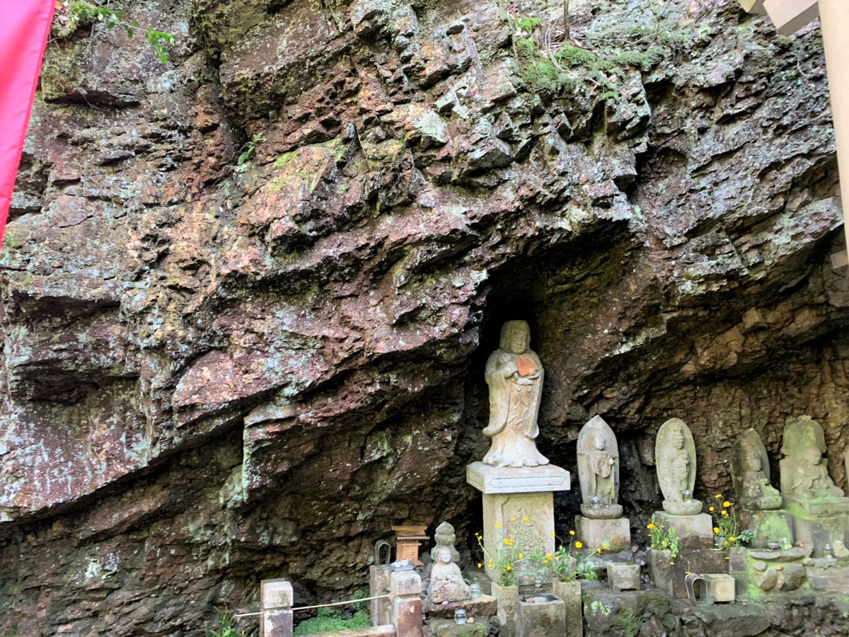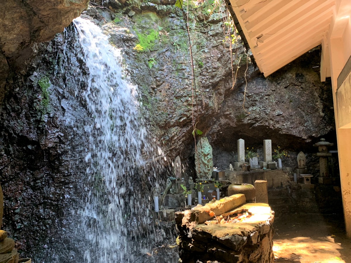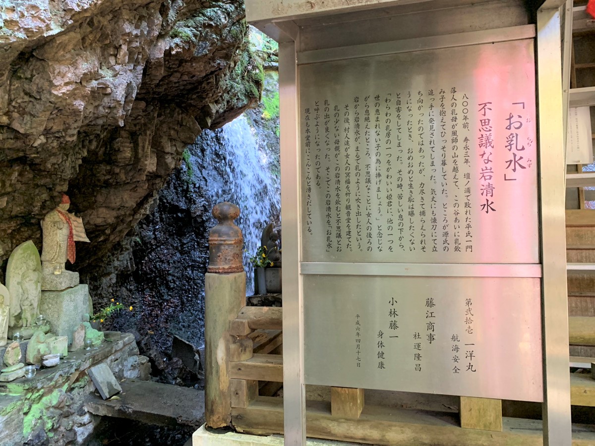 境内には滝場、本堂の横には岩清水の「お乳水」があり、この岩清水は九州の名水として多くの参詣者の喉と心を潤しているといいます。