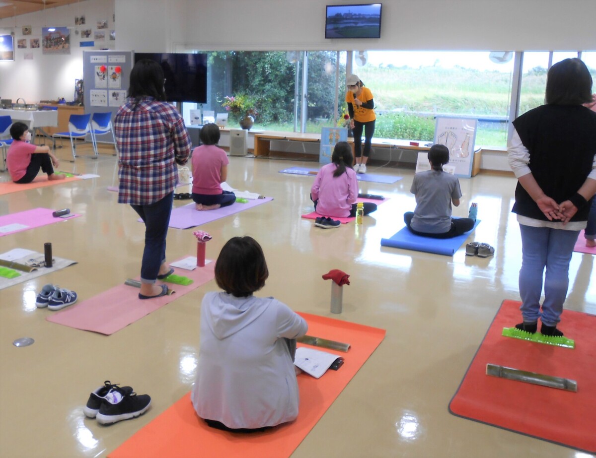 持ち物は、ヨガマット、タオル、水筒、動きやすい服。参加者には竹ふみがプレゼントされます。