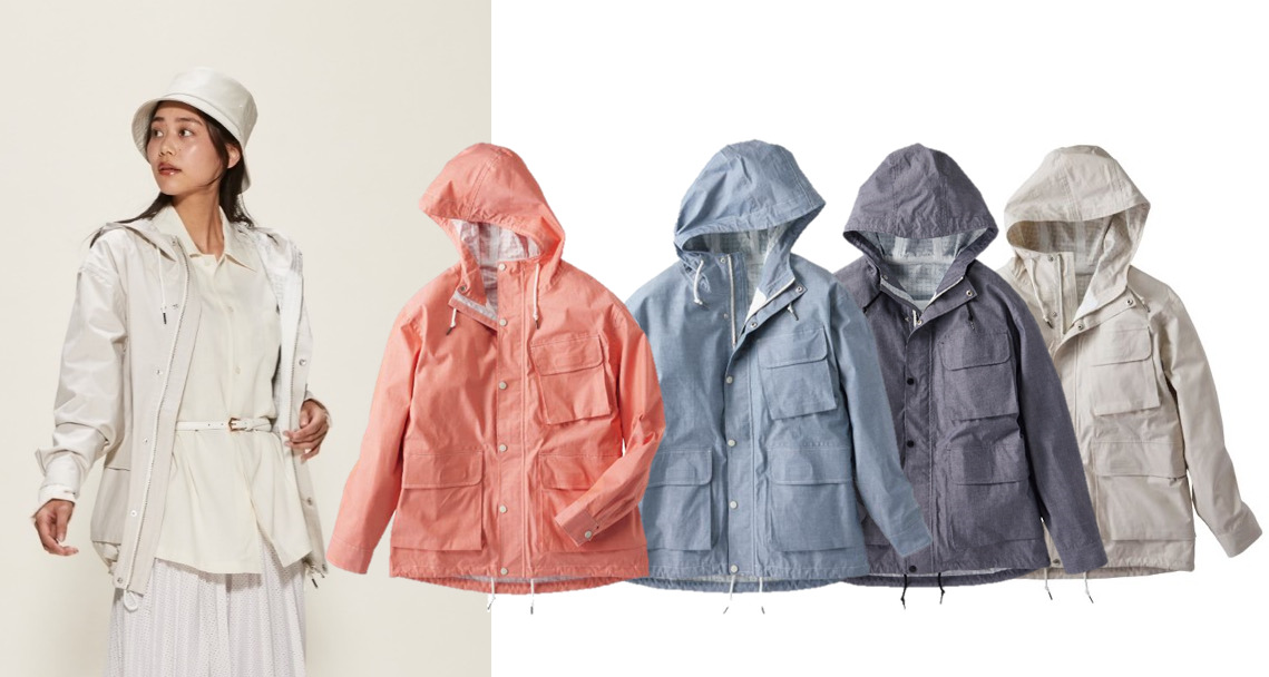 「FLAME-TECH®マウンテンザックレインパーカー」は、普段着でも使えるオシャレなレインウェアで、FLAME-TECH®加工がされています。焚火の火の粉でも穴あきしないのが特徴で、キャンプにもってこいの商品。また、汚れを気にせず着れるので梅雨の時期でも“純白雨の日コーデ”が楽しめます。カラー展開はオレンジ、サックス、ブラック、グレージュ。サイズはS~3L。
