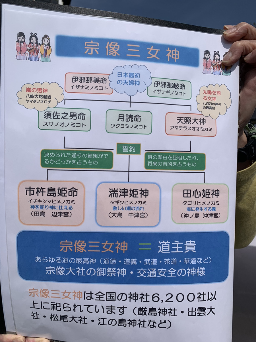 宗像歴史観光ボランティアの会作成の宗像三女神の説明書き