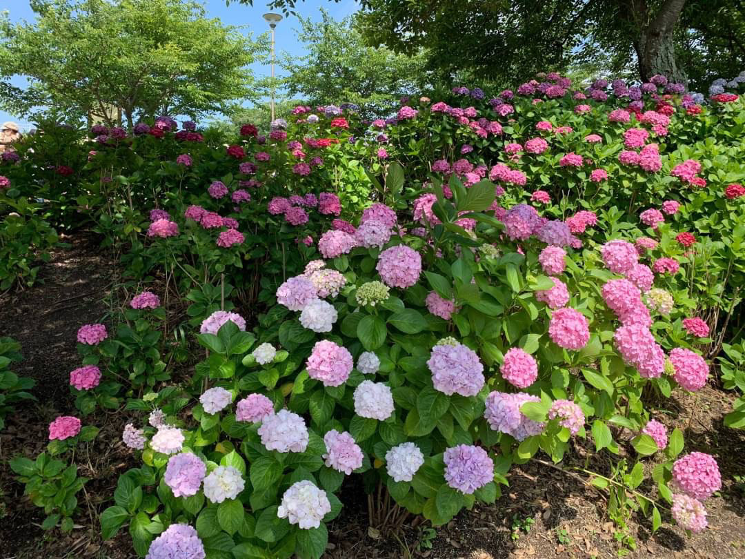 「弁財天上陸の場」から山手に登った場所にある「高塔山公園」ではこの時期、約7万4300株のアジサイが公園内を彩ります。6月18日は若松渡場から無料シャトルバスが運行されるそうです。