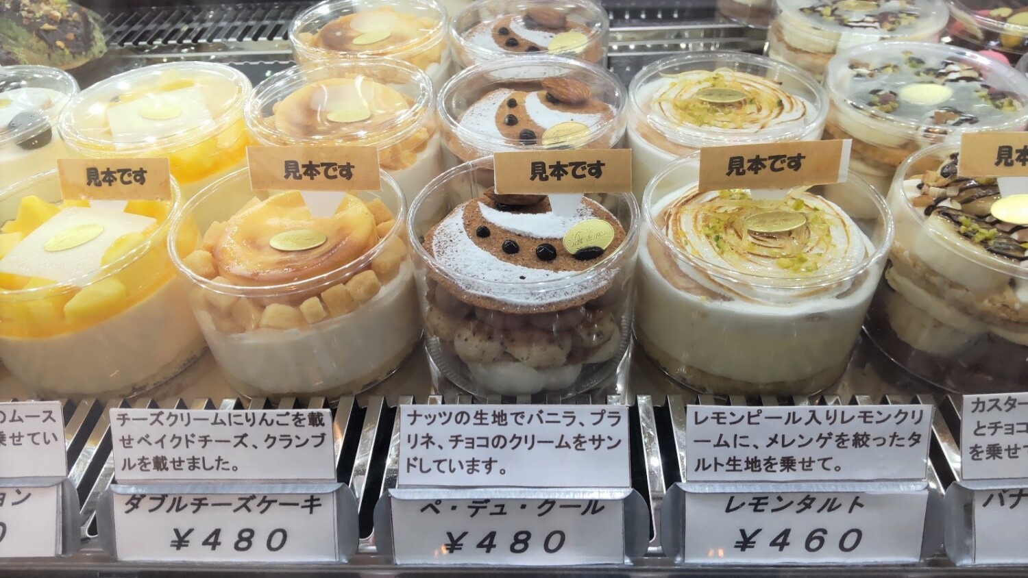 ショーケースには丸いカップに作られたケーキが並んでいて、ちょっとした宝箱のように見えます。