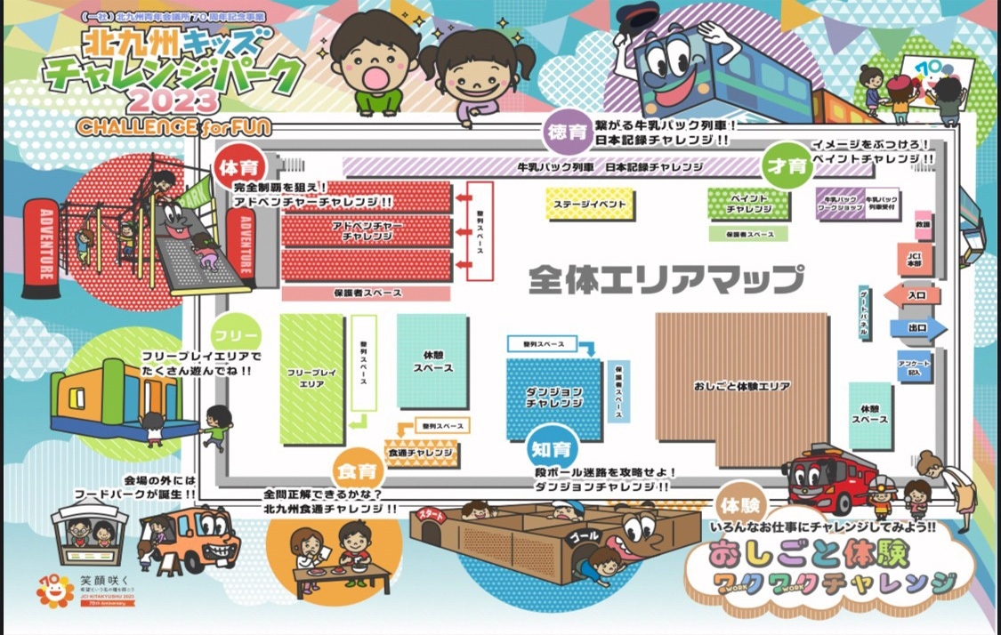 一般社団法人北九州青年会議所70周年記念事業として開催されるイベント。「5育+α」をテーマにしたさまざまなチャレンジが楽しめる子ども向けのイベントです。