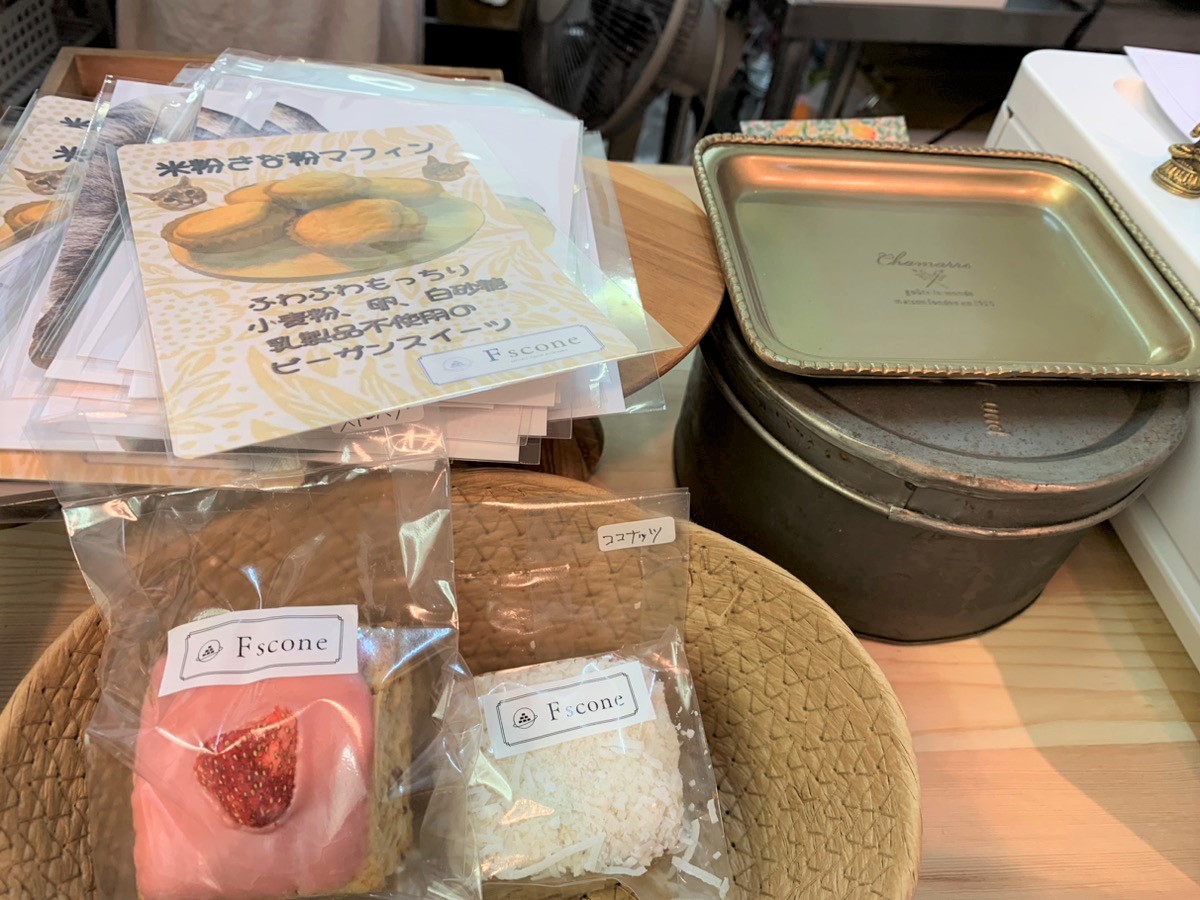 Fsconeのスコーンの材料は、できるだけ身体に優しい素材を使いたいとの思いから、基本となる生地の材料にこだわって、国産の小麦粉、有機豆乳、グラスフェッドバター、太白ごま油、きび砂糖を使用しているそうです。