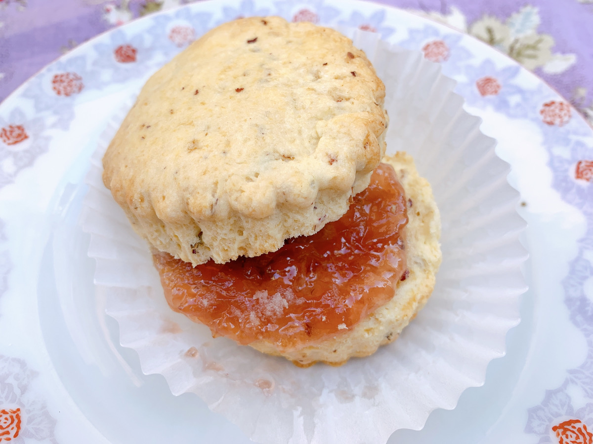 薔薇の花を練り込んだ生地に薔薇のジャムをサンド「薔薇のスコーン」