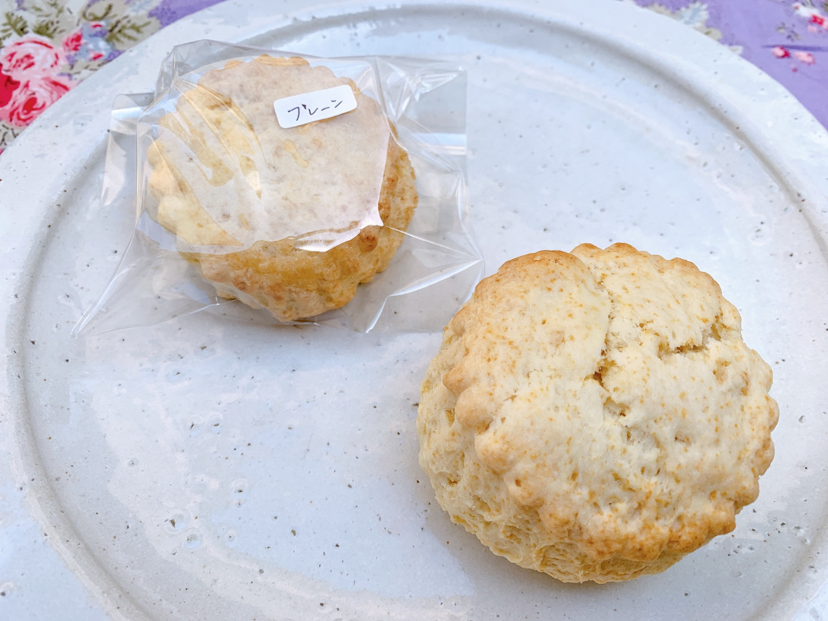 写真左がバタースコーン(プレーン) 写真右が生クリームスコーン(プレーン)