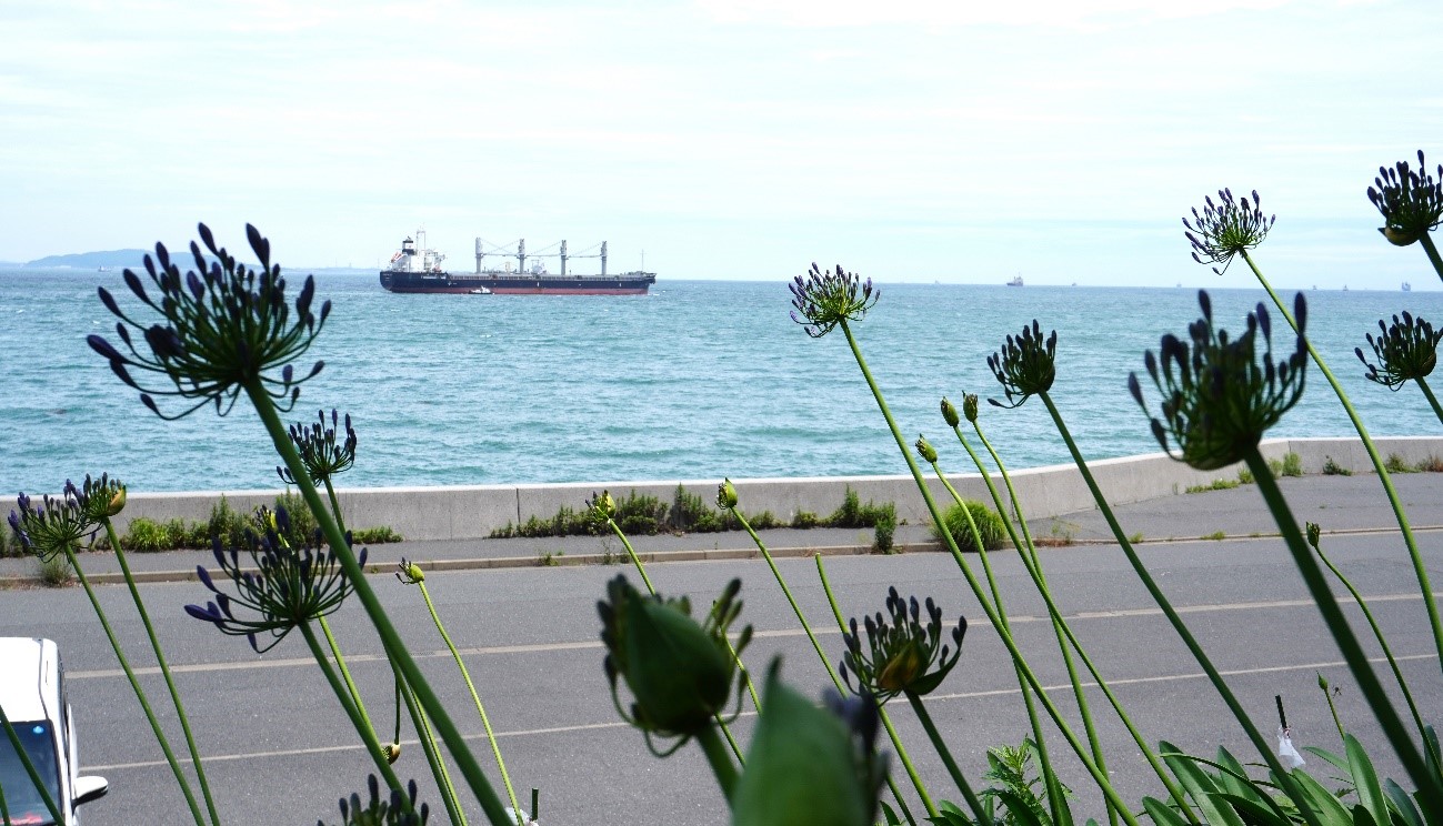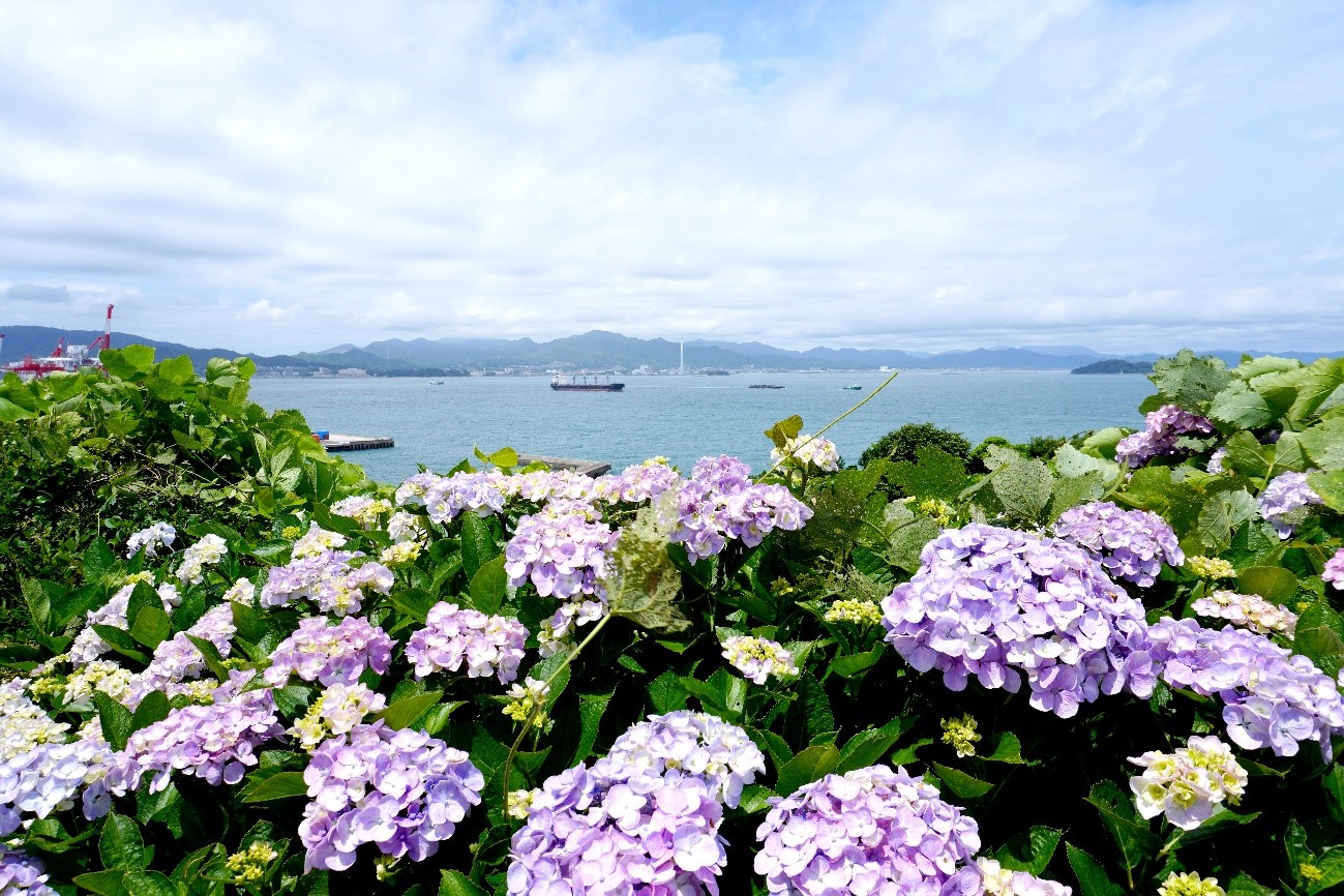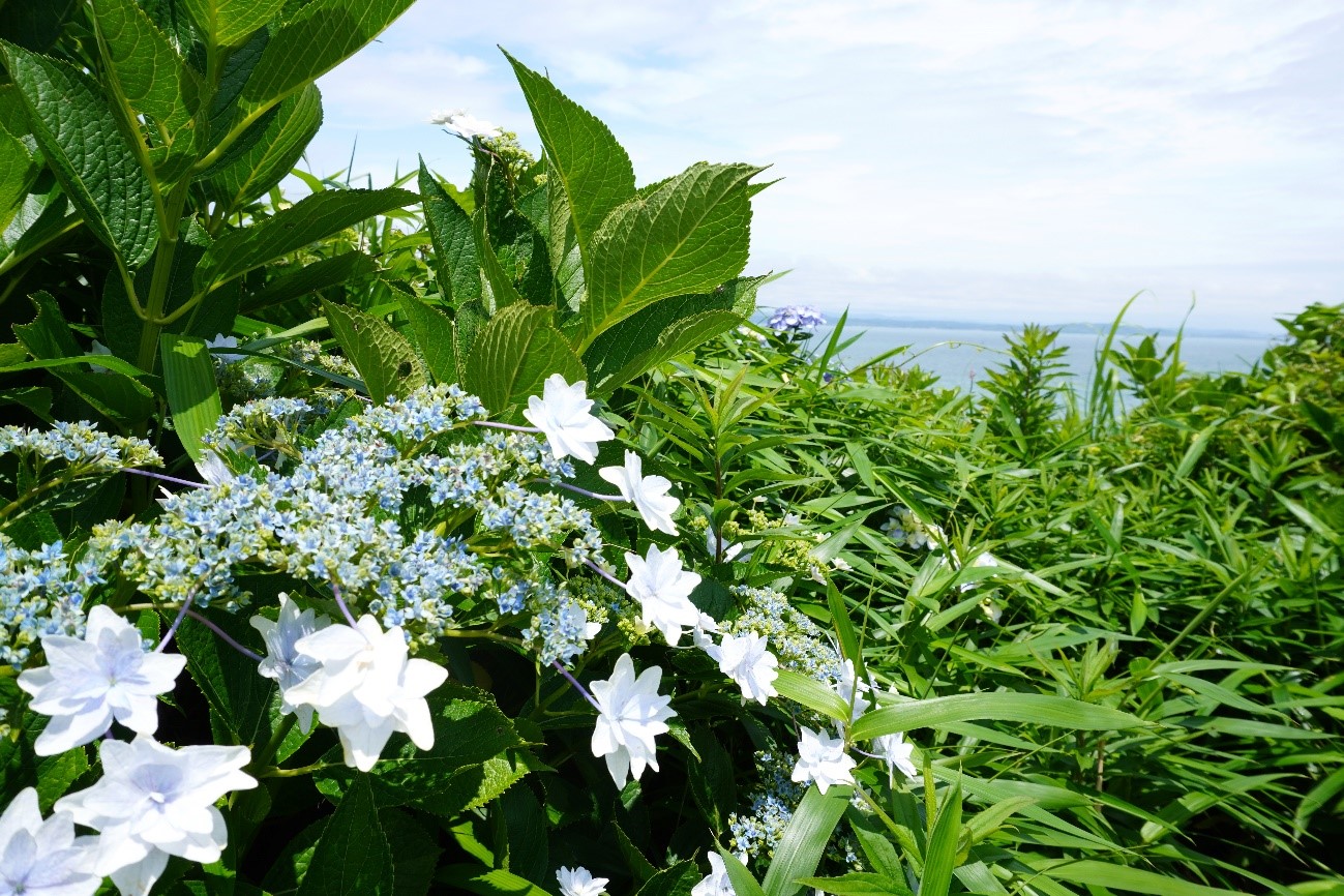 海とのコラボも美しい色とりどりの「紫陽花」
