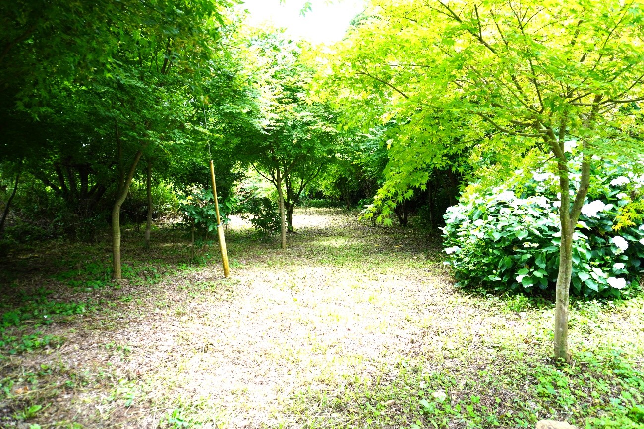 灯台の階段を上って行った先の一段高くなった場所は青紅葉が目に染みるほどです。
