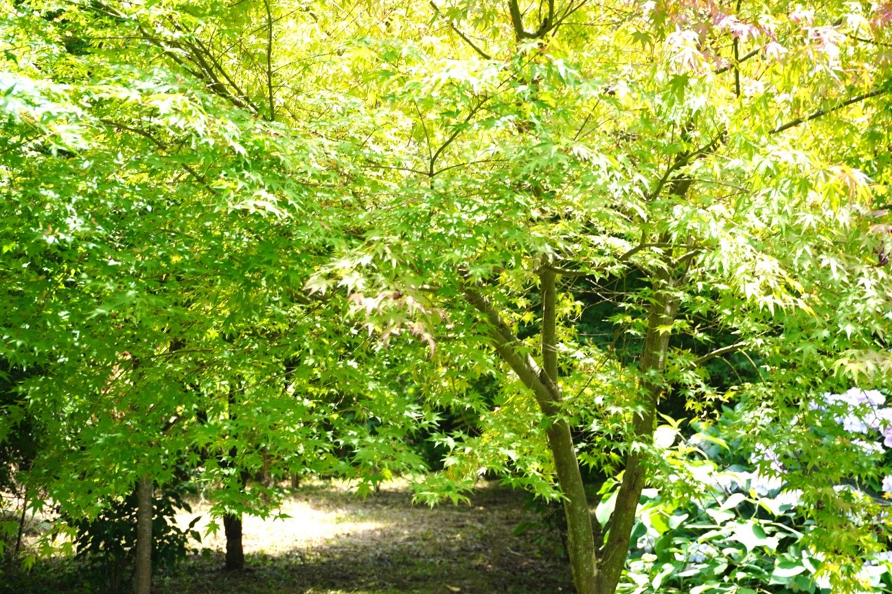 目に染みる鮮やかな「青紅葉」 これからは「アガパンサス」も楽しみ