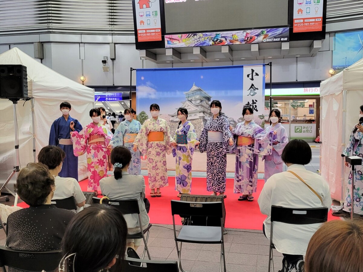 また、小倉北区室町の着物販売店「呉服のうめね」は、小笠原流家元教授による「煎茶体験」や「浴衣ファッションショー」を開催。