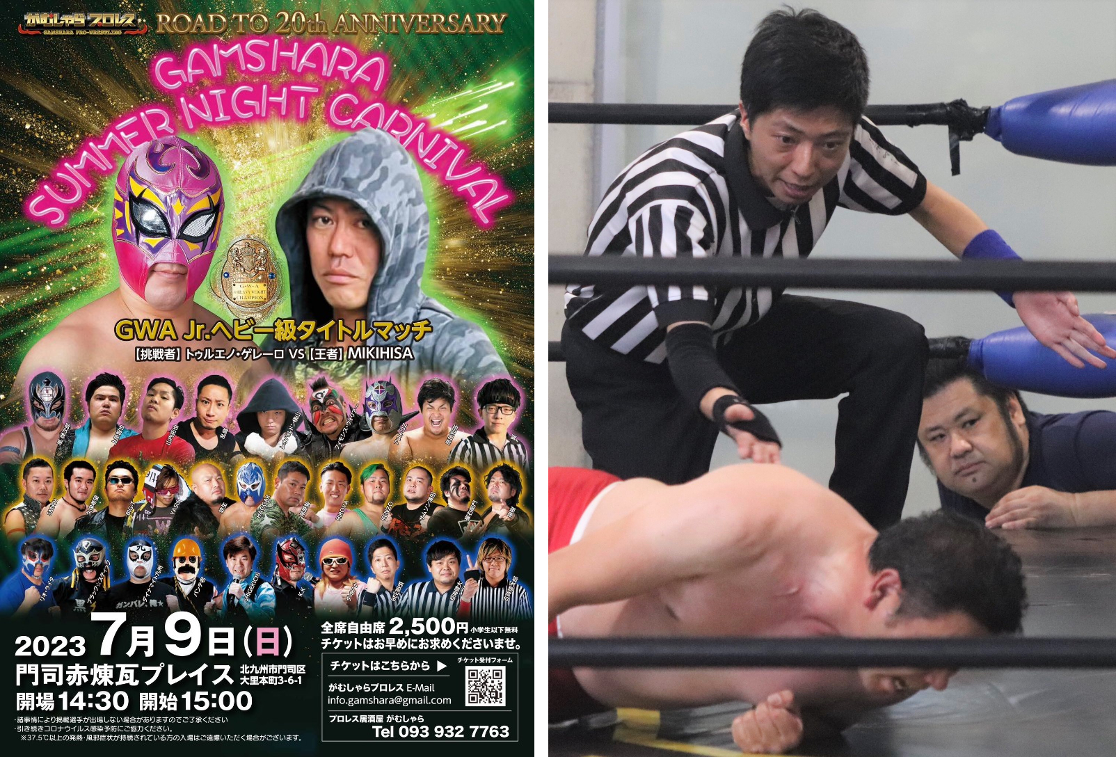 そんな那須さんも大活躍のがむしゃらプロレスの試合が、今月7月9日に門司赤煉瓦プレイスで開催されます。華やかでかっこいい選手たちの活躍はもちろんなのですが、それだけじゃない影の人たちの存在、すべての人たちの勇姿を、この目に焼きつけたいですね!