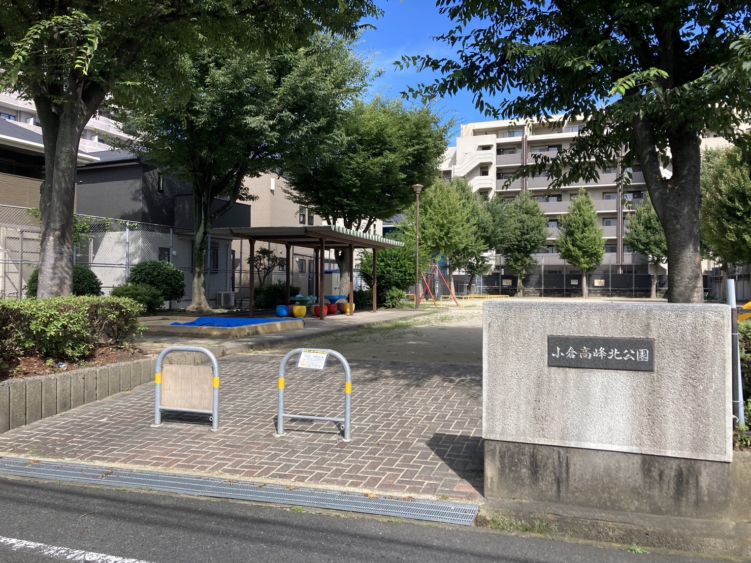 戸畑駅方面の西鉄バス「日明病院前」から徒歩6分ほど、サンリブ朝日ヶ丘店の裏の坂道を登って行ったところにある「小倉高峰北公園」。