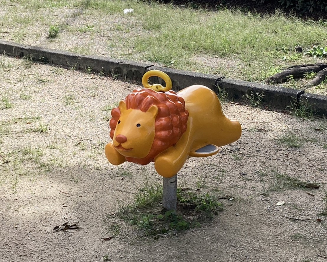 何とも愛らしい風貌のこちらの遊具。上にのって体を上下に揺らす遊びでおなじみですね。つぶらな瞳が愛らしいです。