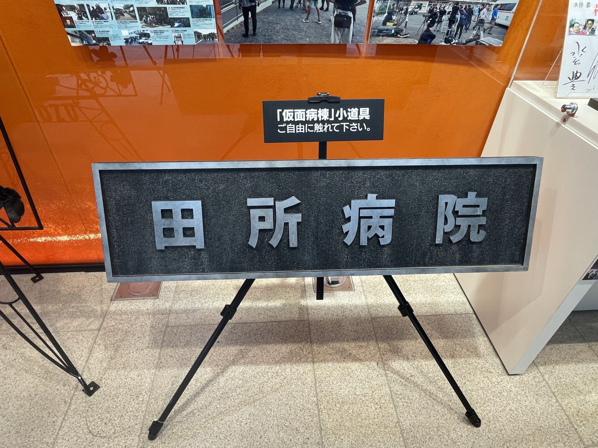 さらに、『仮面病棟』で使用された「田所病院」の看板は実際に触れることが可能です。美術スタッフによる細かな装飾やクオリティーを間近で感じることができますよ。