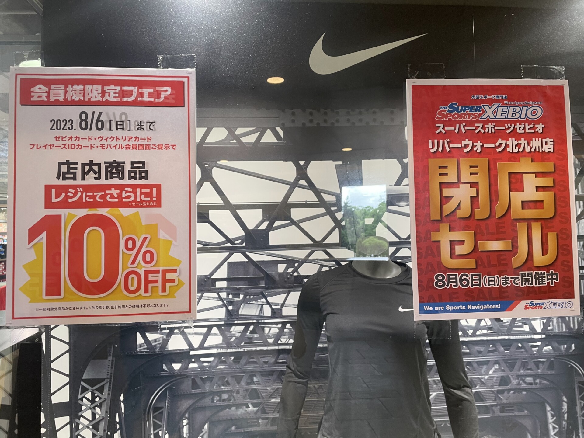 リバーウォーク北九州3階にある大型スポーツ専門店「スーパースポーツゼビオリバーウォーク北九州店」が8月6日をもって閉店します。