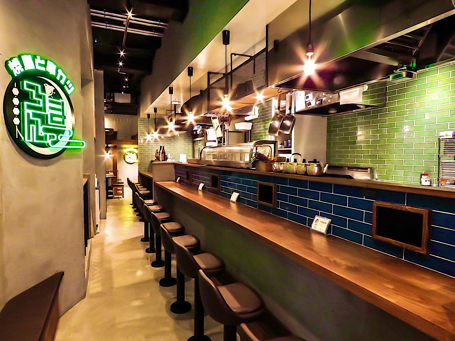「焼鳥と串カツろまん」は、創作酒場「焼鳥×串カツ」をコンセプトに定番メニューだけでなく創作メニューまで、焼鳥全28種類、串カツ全26種類を用意。ネオンのサインが印象的な空間で、カウンター席、テーブル席、ロフト席があるのでシーンに合わせて使い分けできます。