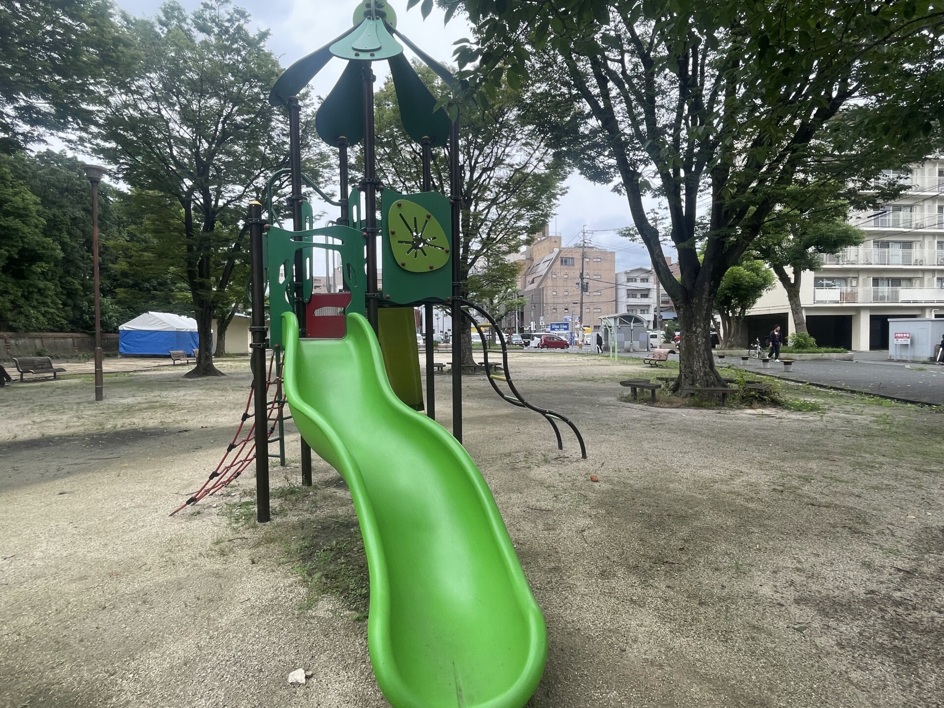 【古船場公園】すべり台やのぼり棒がついたコンビネーション遊具がある公園(北九州市小倉北区)
