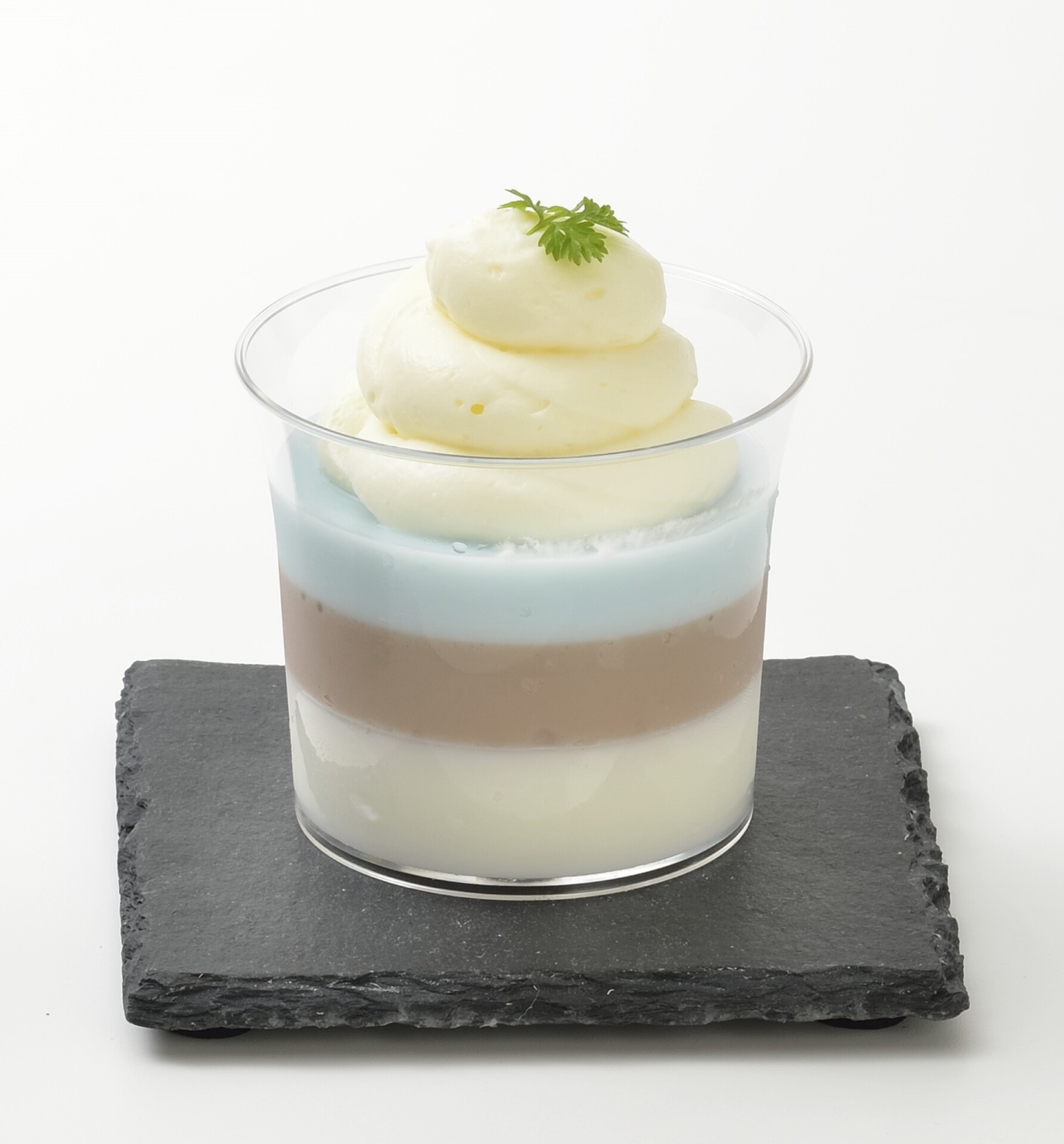 ピュア杏仁・チョコ杏仁・バタフライピー杏仁の3層からなる「プレミアムピュア杏仁」(420円)は、贅沢な北海道産生クリームを使用しています。