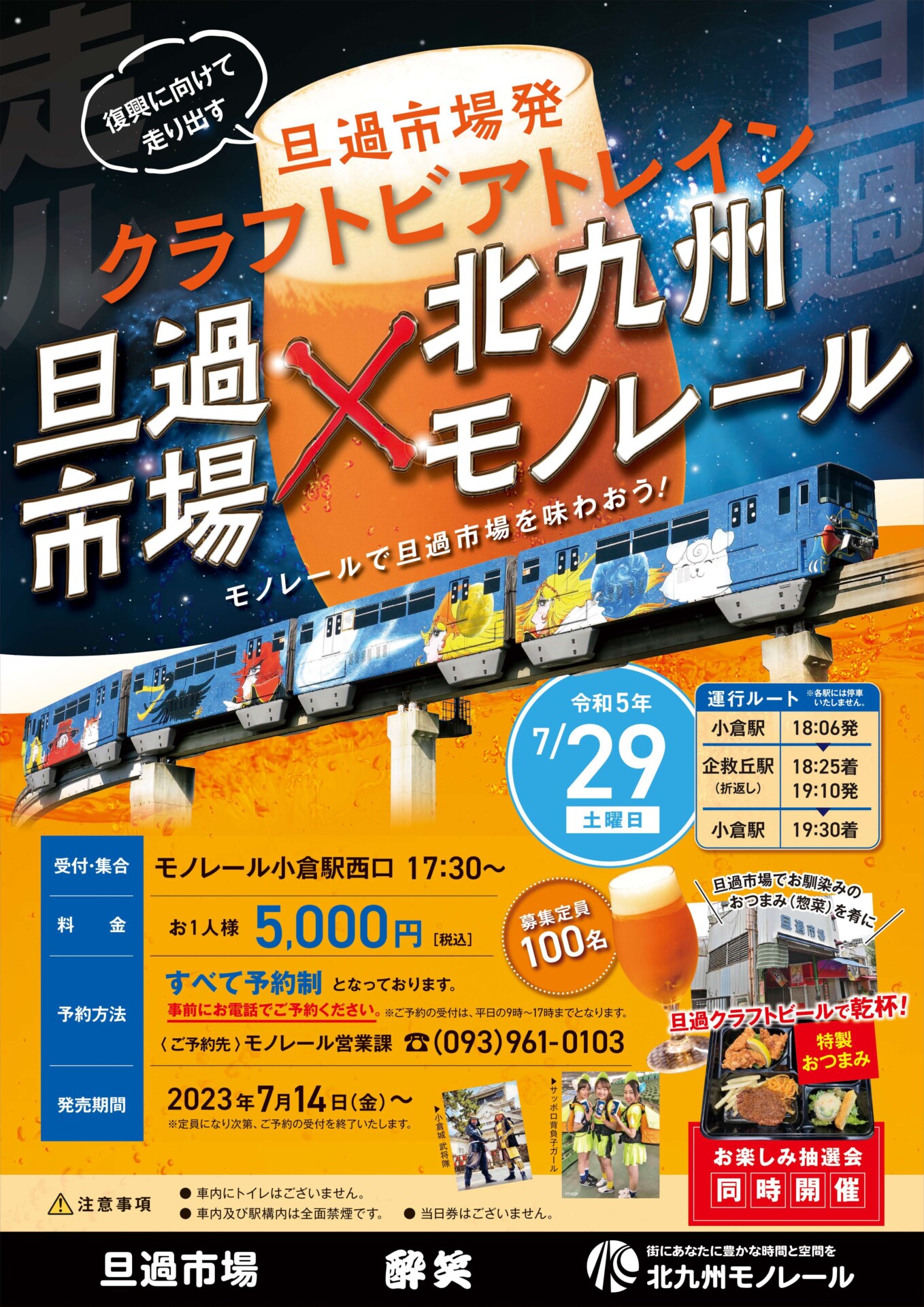 7月29日、旦過市場商店街と北九州高速鉄道株式会社がコラボし、「クラフトビアトレイン」が1便限定で運行します。