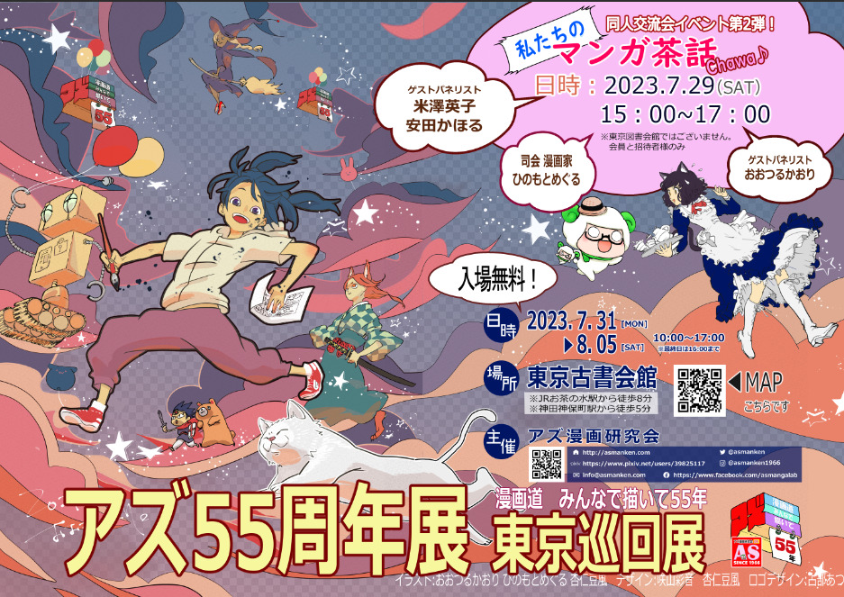 今回はお誘いをいただいて、楽しい時間を過ごすことが出来ました。また、イベントがあれば、ぜひ伺いたいと思っています。ちなみに7月31日~8月5日には東京で「アズ55周年展 東京巡回展」が開催される予定で、合わせて7月29日にイベント「私たちのマンガ茶話Chawa♪」も行われるとのことです。詳細は「アズ漫画研究会」ホームページで見ることができます。