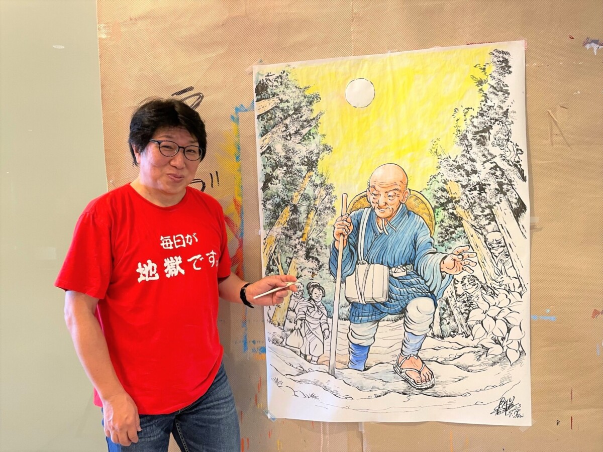 ライブペイントしているのは、漫画家の松原香津美さん。猫のイラストは、昨年のライブイベントの作品でした。