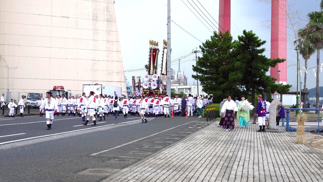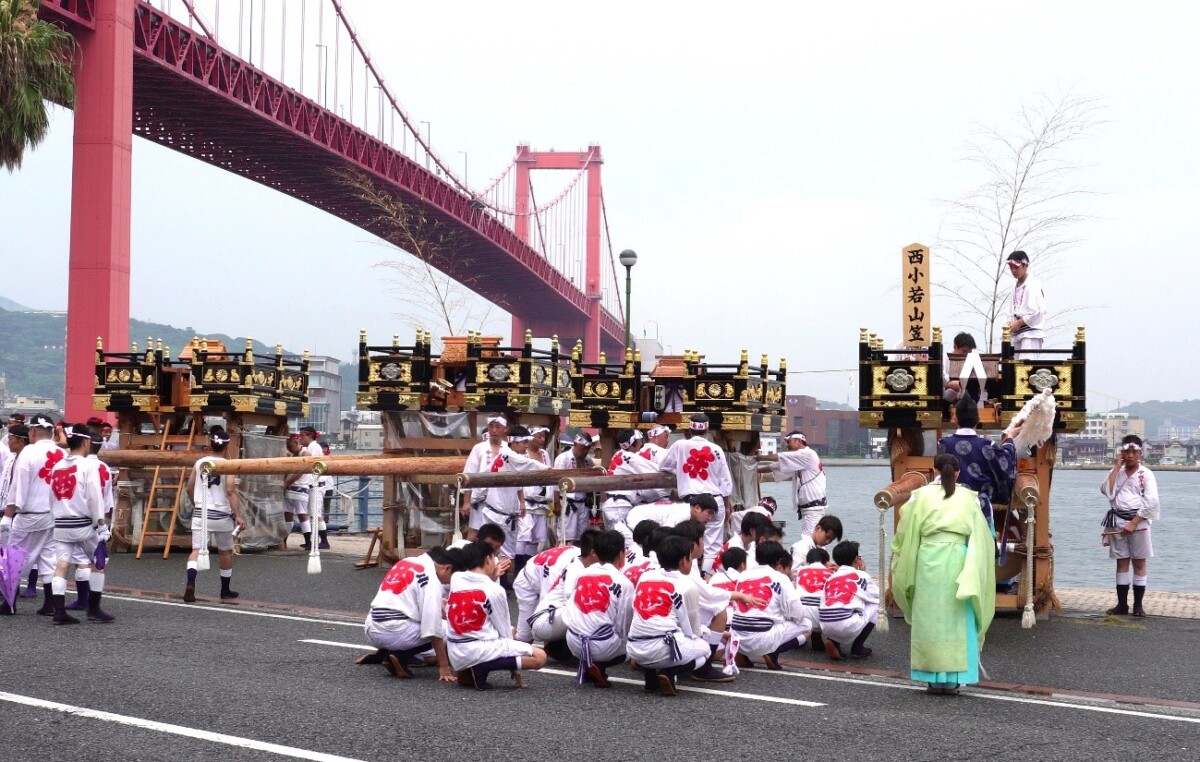 • 若戸大橋のたもとで行う神事・戸畑祇園大山笠「お汐井取り」を見学【北九州市戸畑区】