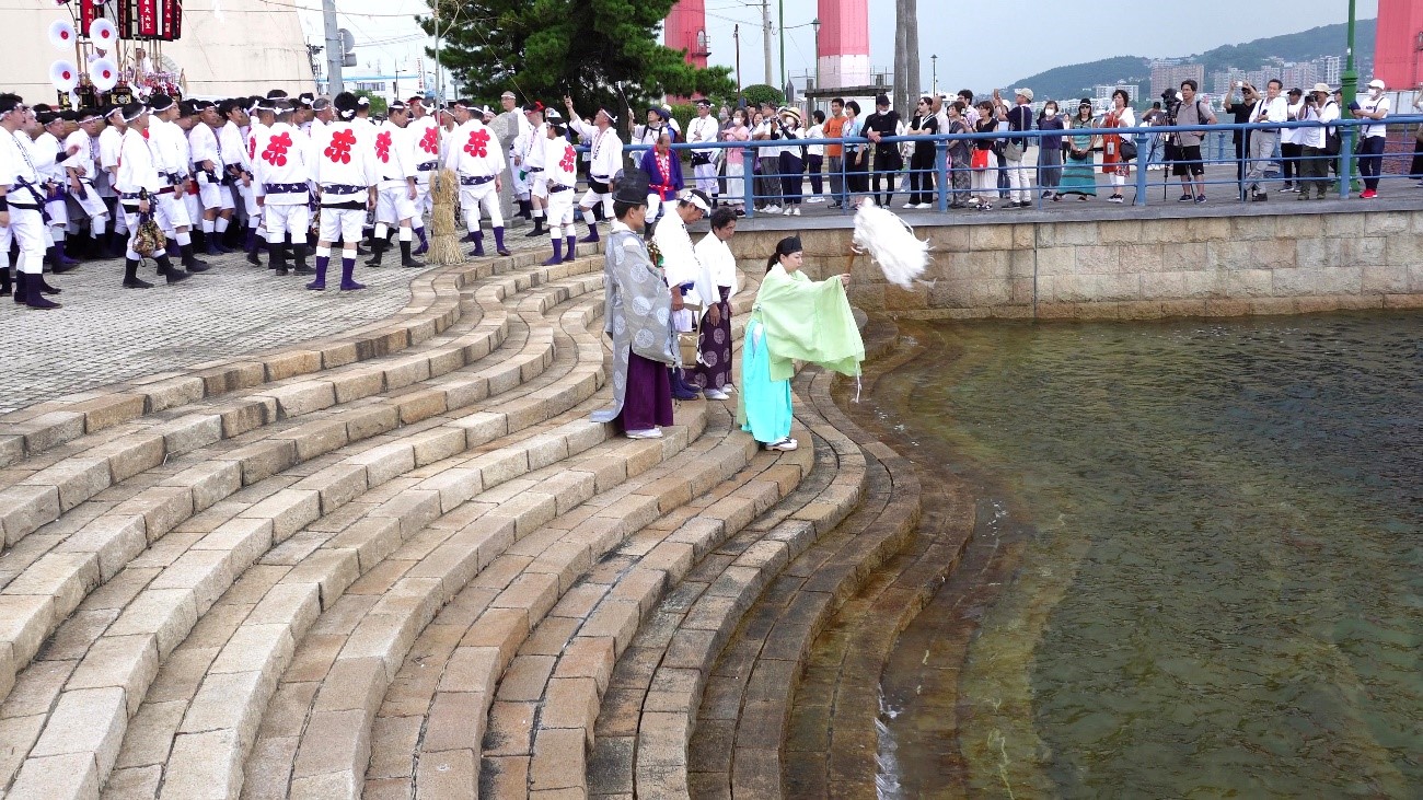 若戸大橋のたもとで行う神事・戸畑祇園大山笠「お汐井取り」を見学【北九州市戸畑区】