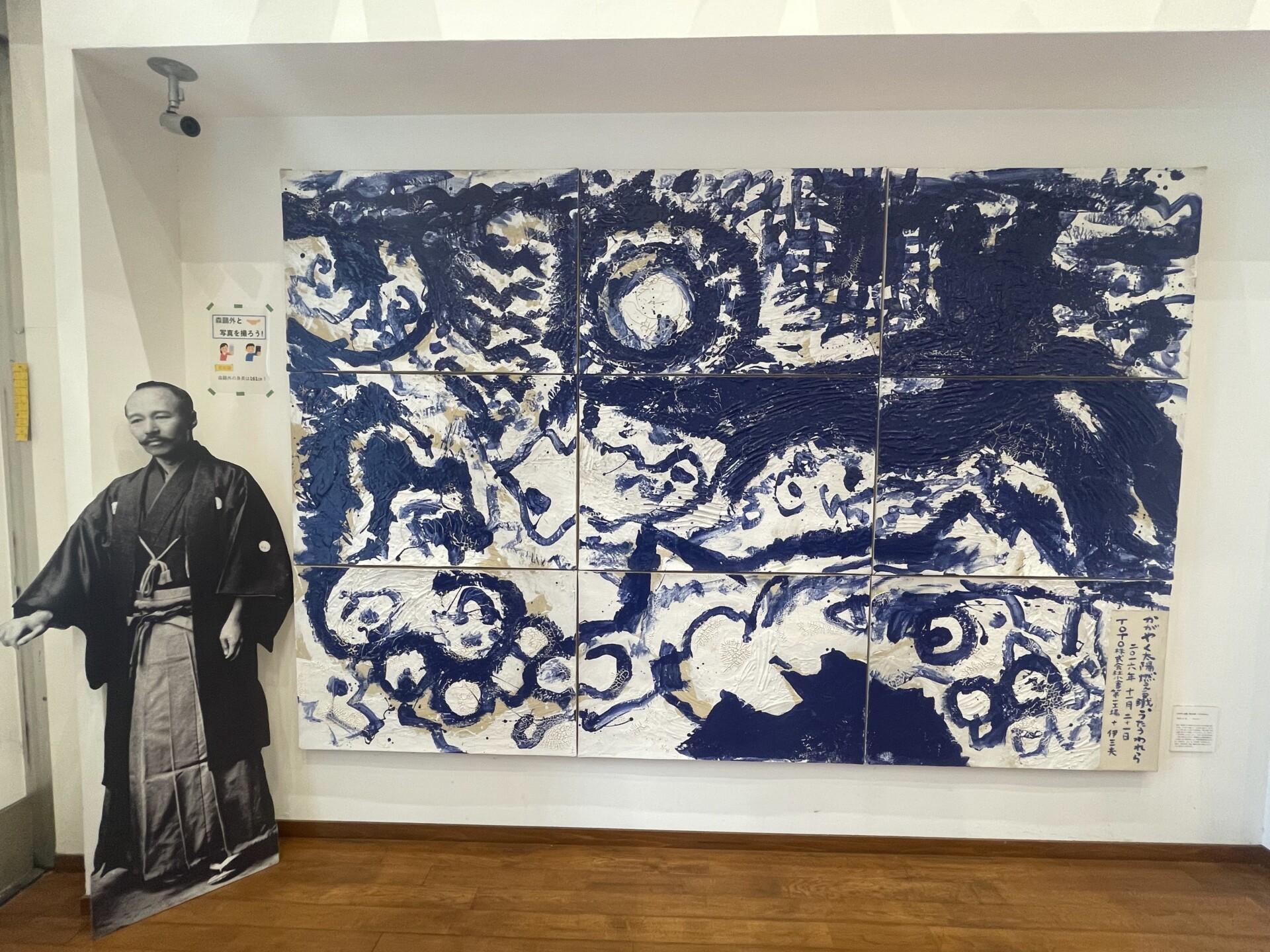 タイトルは「かがやく太陽、燃える鐡(てつ)、うたうわれら」。陶板9枚で作った作品で、太陽と溶鉱炉、そして声を合わせる人間をデフォルメした抽象画がダイナミックに描かれています。陶板壁画の隣には森鷗外の等身大パネルがあるので一緒に写真を撮ることができますよ。