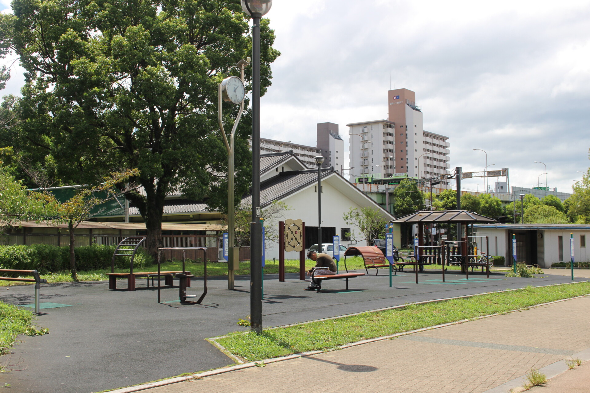 清張通り沿いには「北九州市オリジナル健康広場」もあり、さまざまな年齢の人が自分のペースで運動しています。