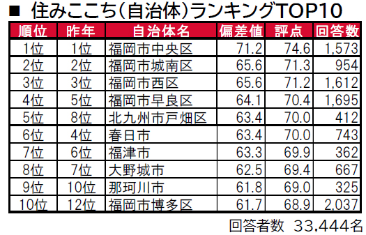 ※出典:「街の住みここち & 住みたい街ランキング2023<九州・沖縄版>」、「街の住みここち&住みたい街ランキング2023<福岡県版>」