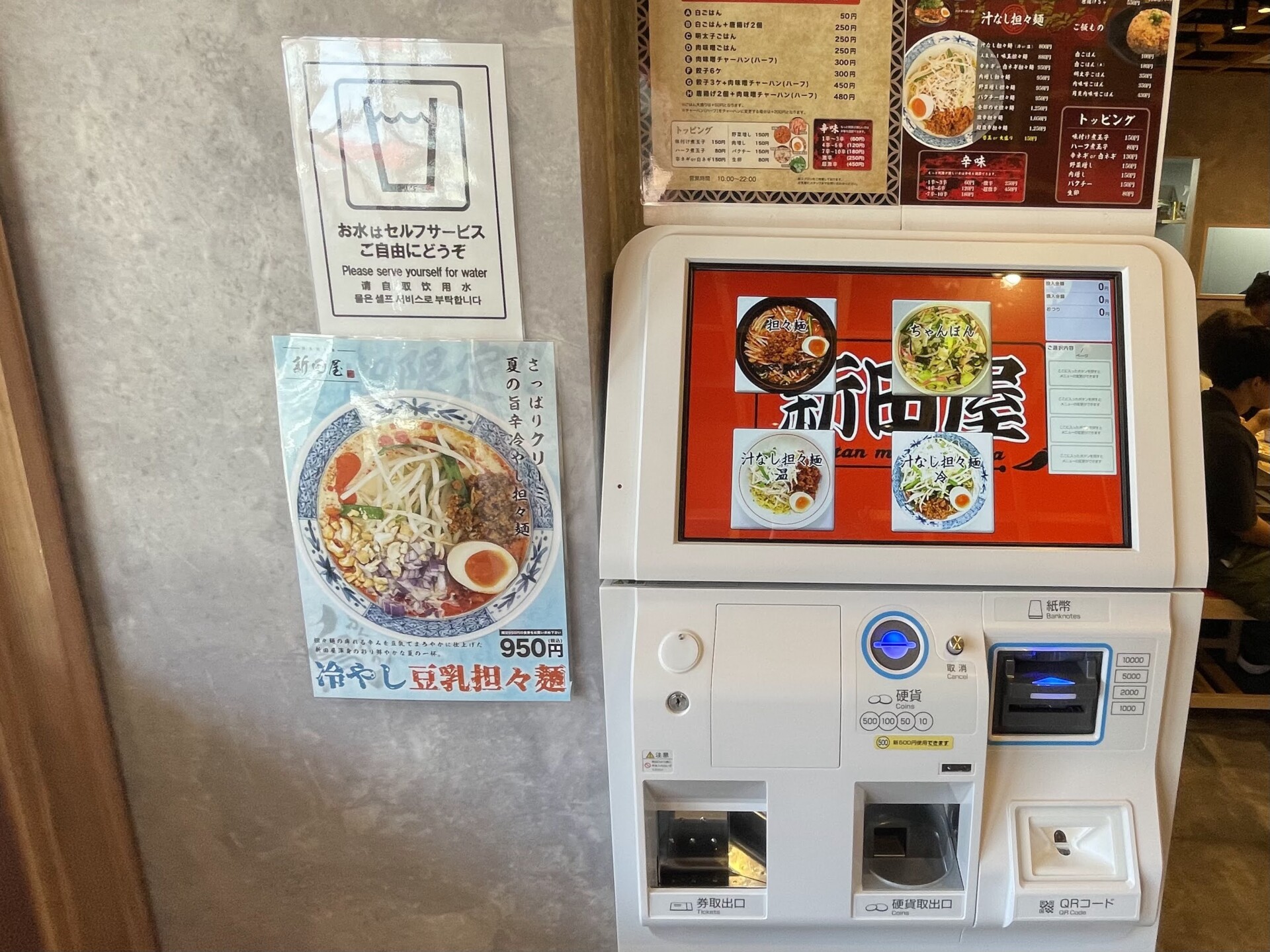 入店したらまず入口左手にある券売機でメニューを選び注文します。