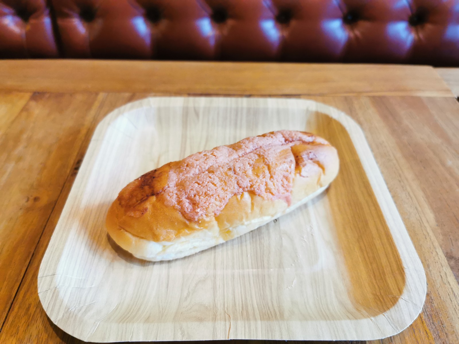 「小倉めんたいコッペ」(140円)は、こだわりのめんたいソースに注目したいところ。博多鳴海屋の協力の元に作られたというめんたいソースはジュワっと風味が広がって、優しい味のシロヤのコッペにとても合っています。