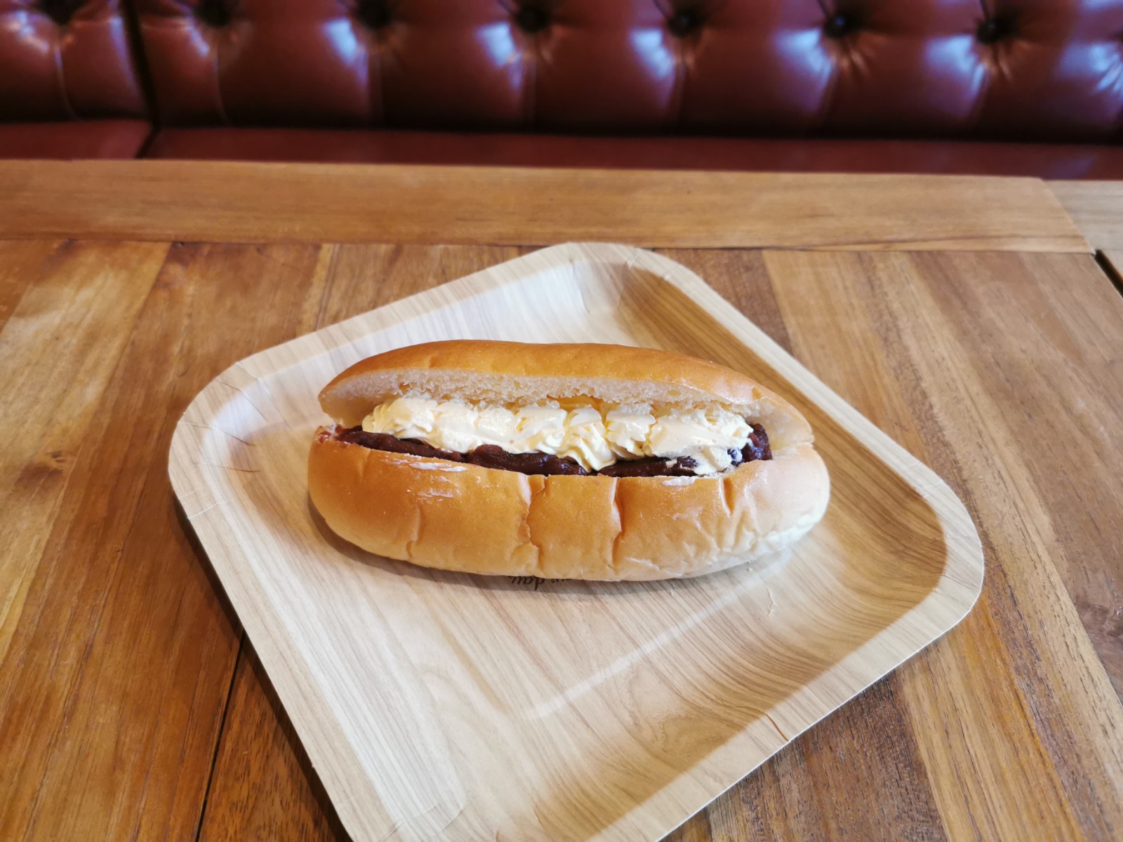 「あんバターコッペ」(140円)は、ヨーグルトのようなすっきりとした甘さの自家製バタークリームに、上品な甘さのあんこのコラボ。こちらも意外にも軽く平らげてしまいました。SNS映えしそうな可愛い見た目も魅力的です。