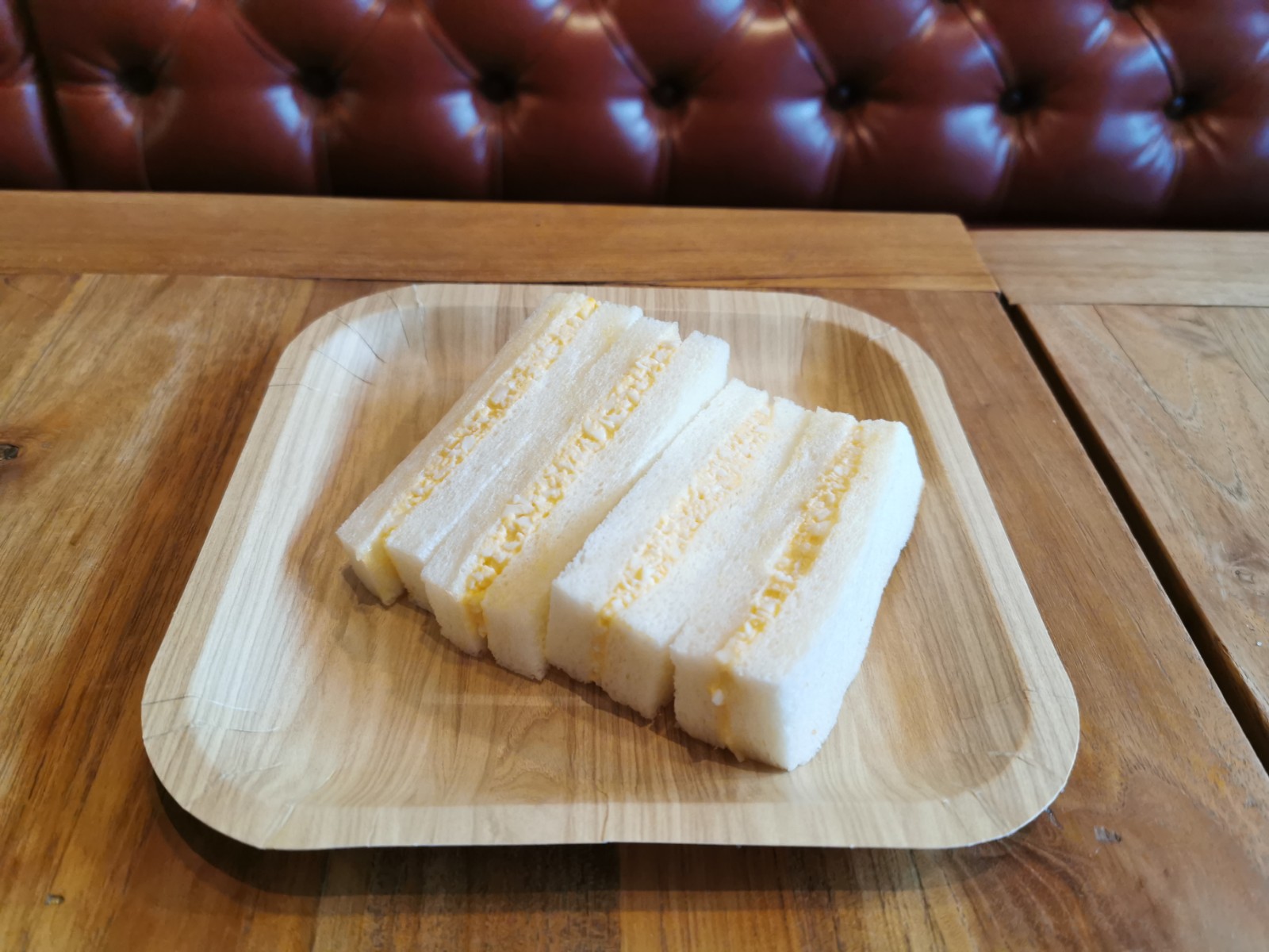 「たまごサンド」(220円)は4切れが1パックに入っています。たまごと食パンの優しい甘さの中に、ピリリと効いたマスタードが良いアクセントに。小腹がすいたときにさっとつまめる大きさなのもいいですね。