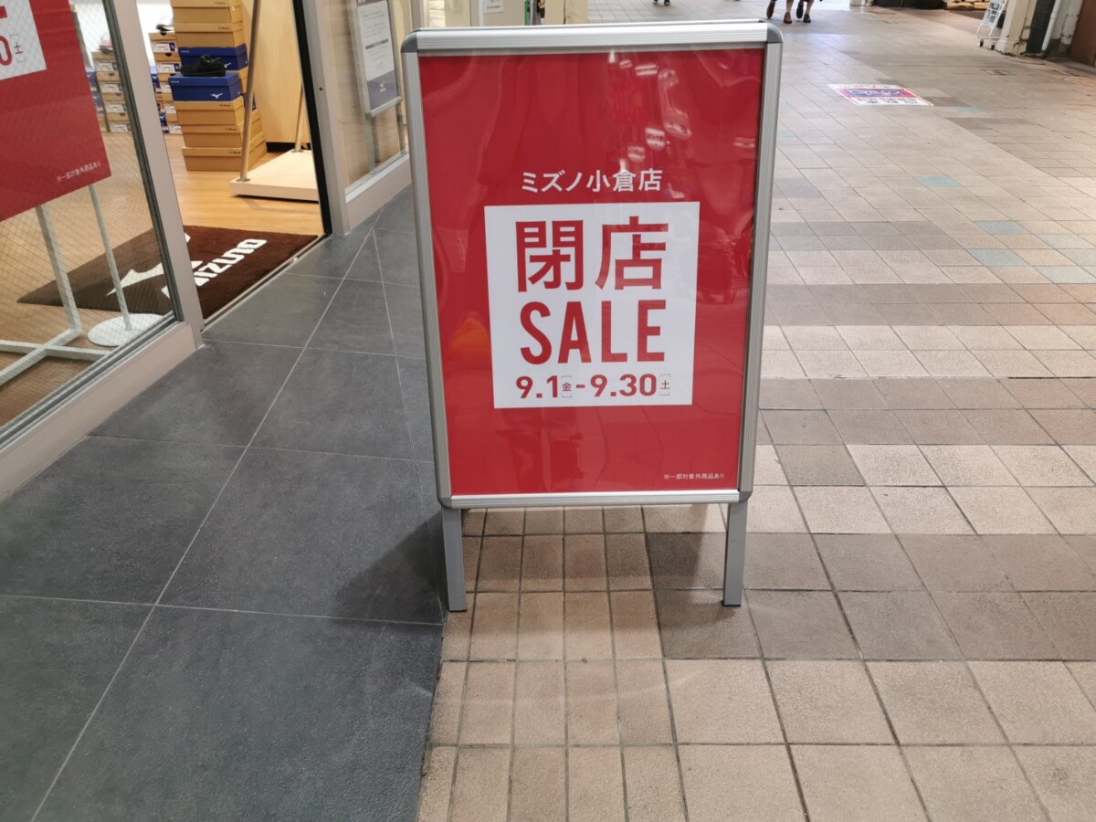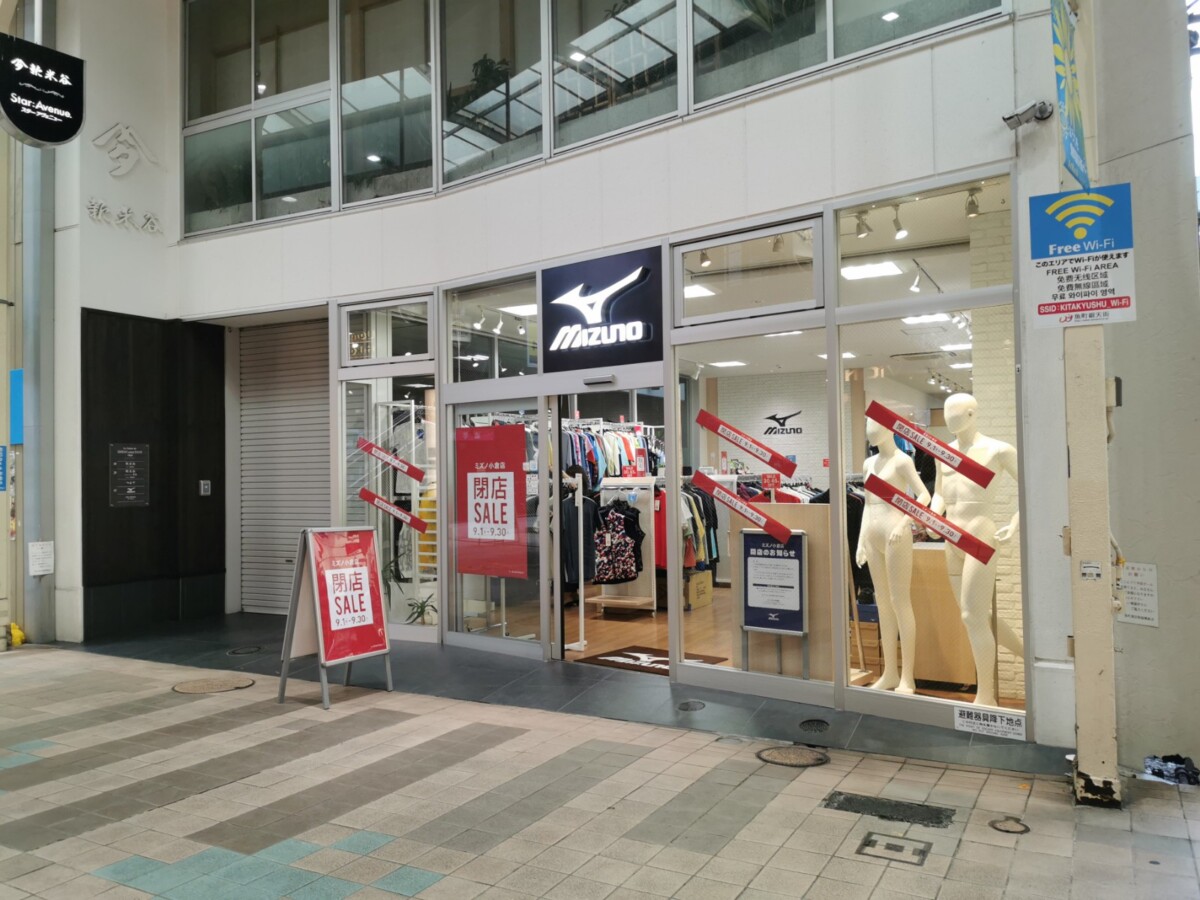 魚町銀天街にあるウォーキング・ランニング用品専門的「ミズノ小倉店」(福岡県北九州市小倉北区魚町3-3-24)が、2023年9月30日をもって閉店します。