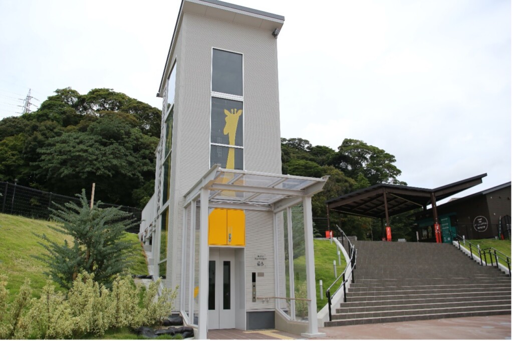 路線バスを利用して訪れる場合は南ゲートから。バス停の装飾をはじめ、入り口のエレベーターは出入口の高さが、同園で飼育しているキリンと同じ高さに設定されているなど、入場前からワクワク気分を盛り上げてくれます。動物の足跡もあるのでぜひ探してみてください。
