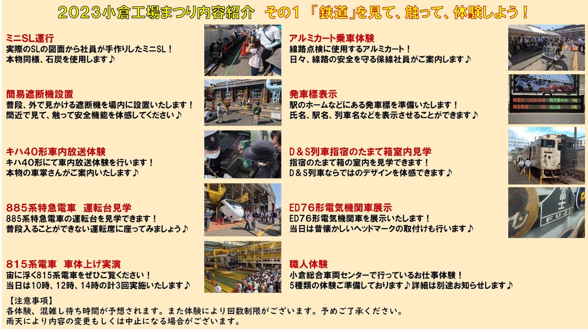 10月15日(日)、昨年3年ぶりに開催された「小倉工場まつり」が、今年も「JR九州小倉総合車両センター」(北九州市小倉北区金田3丁目1−1)で開催されます。