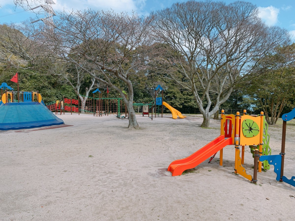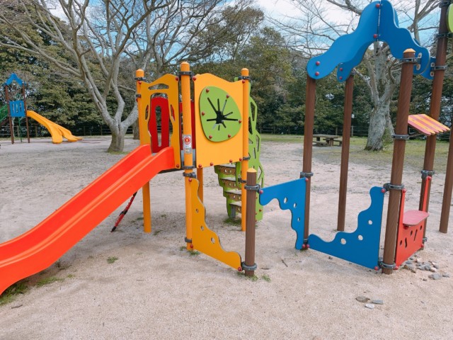 関門海峡の波を思わせるデザインや、バナナの形に見える滑り台などがあります。大きな柵はないので、ボール遊びには不向きですが、遊具で充分遊べます。